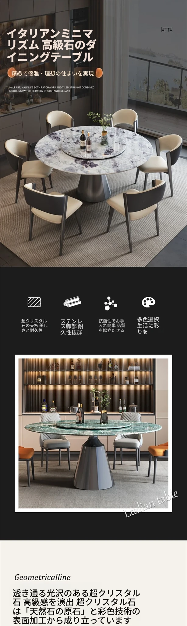 イタリアンラグジュアリー天然スーパークォーツ石のダイニングテーブル - モダンでシンプルな高級大理石製の円形テーブル、別荘や家庭に最適!