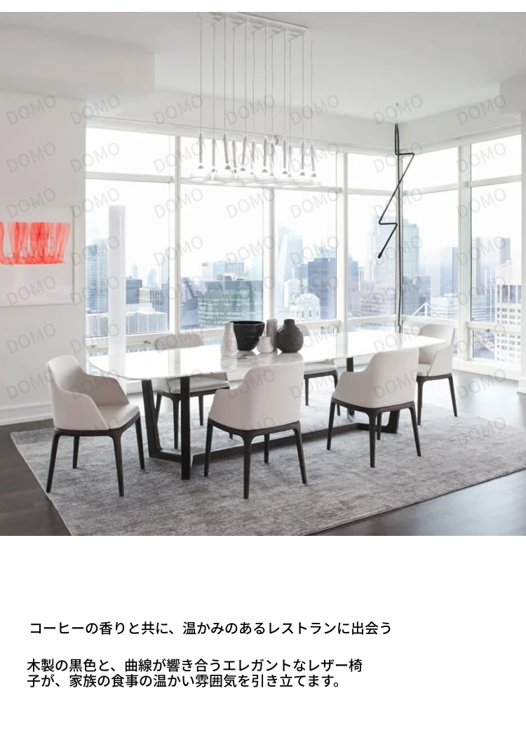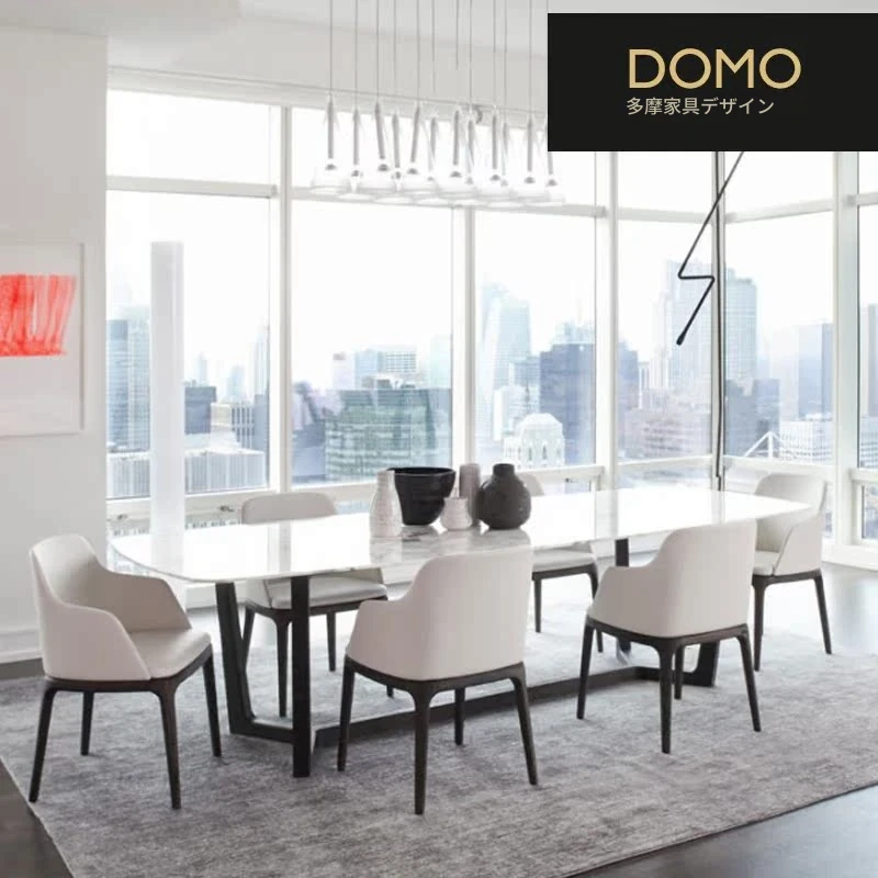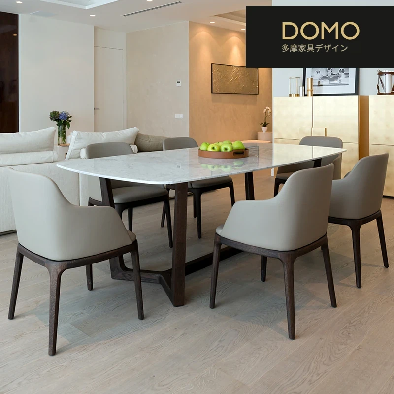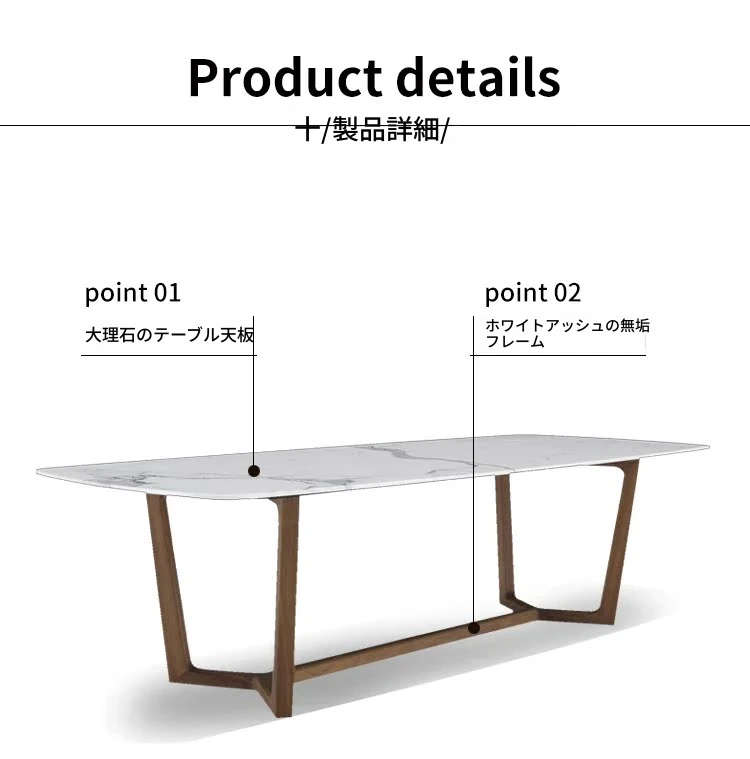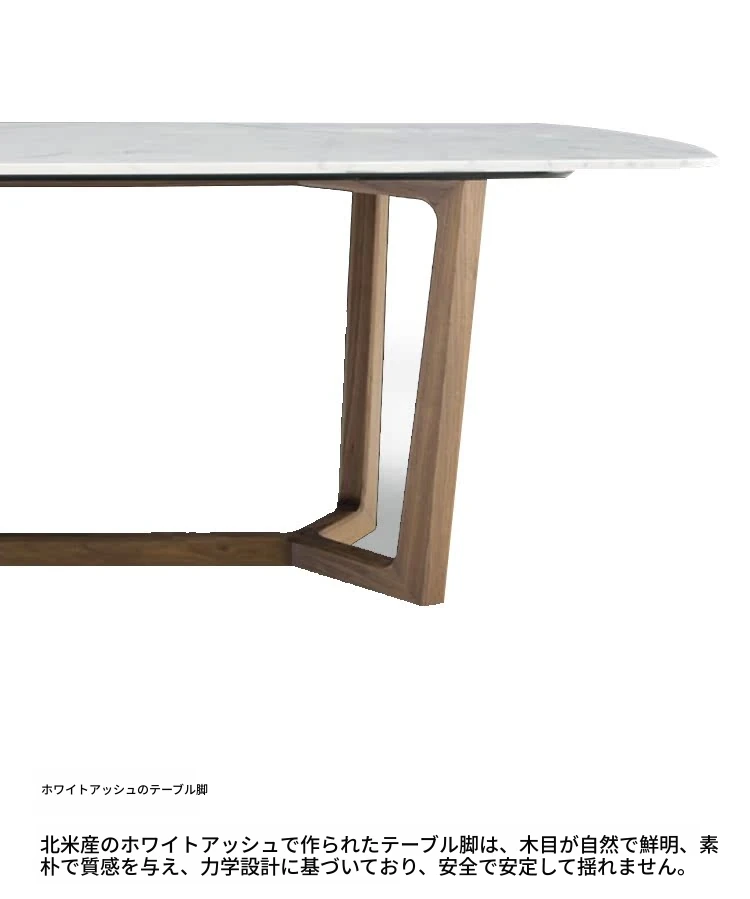 イタリアンライトラグジュアリー 岩板ダイニングテーブル&チェアセット 白アッシュウッドの無垢材使用 大理石の長方形テーブル 火焼石デザインでスタイリッシュな空間を演出!