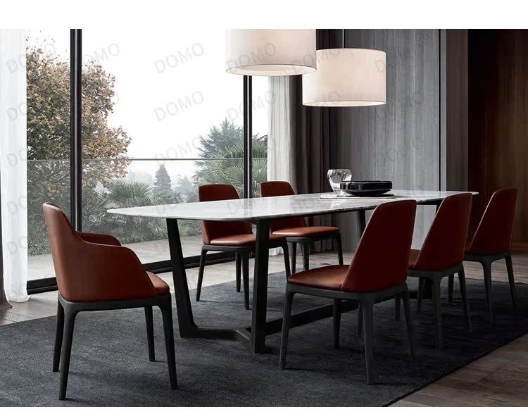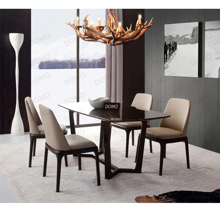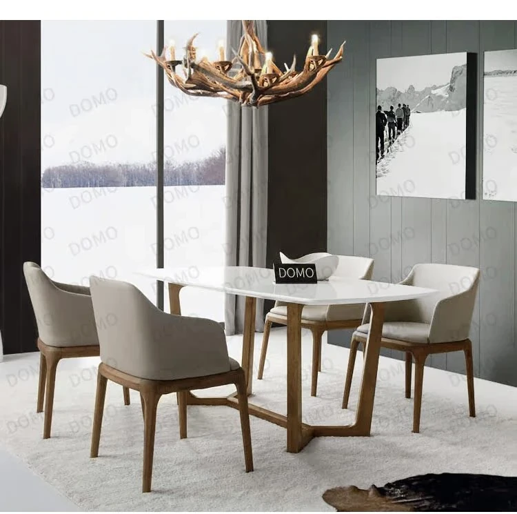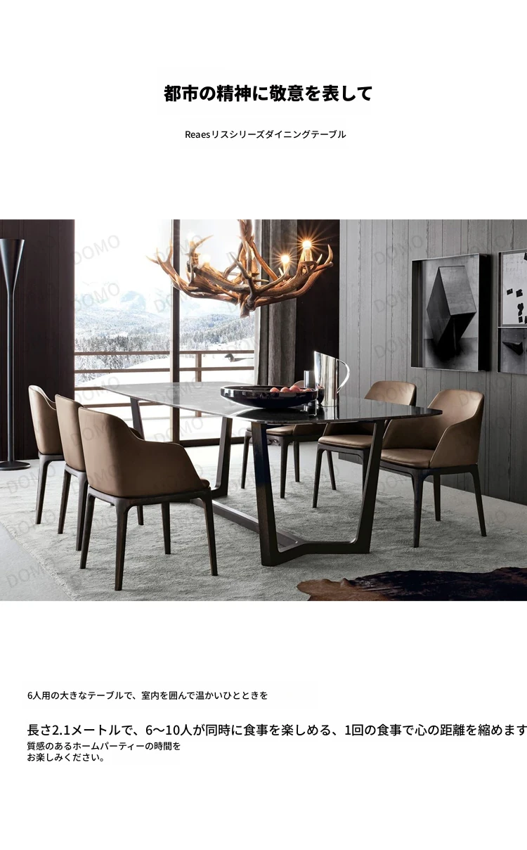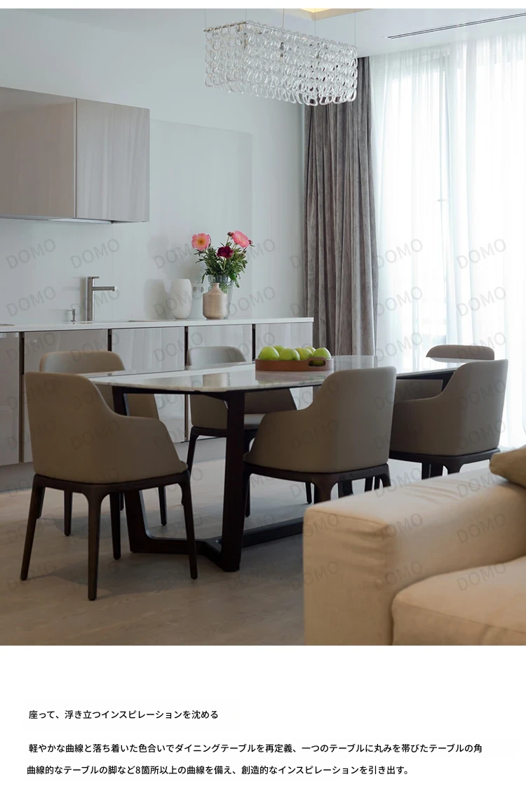イタリアンライトラグジュアリー 岩板ダイニングテーブル&チェアセット 白アッシュウッドの無垢材使用 大理石の長方形テーブル 火焼石デザインでスタイリッシュな空間を演出!