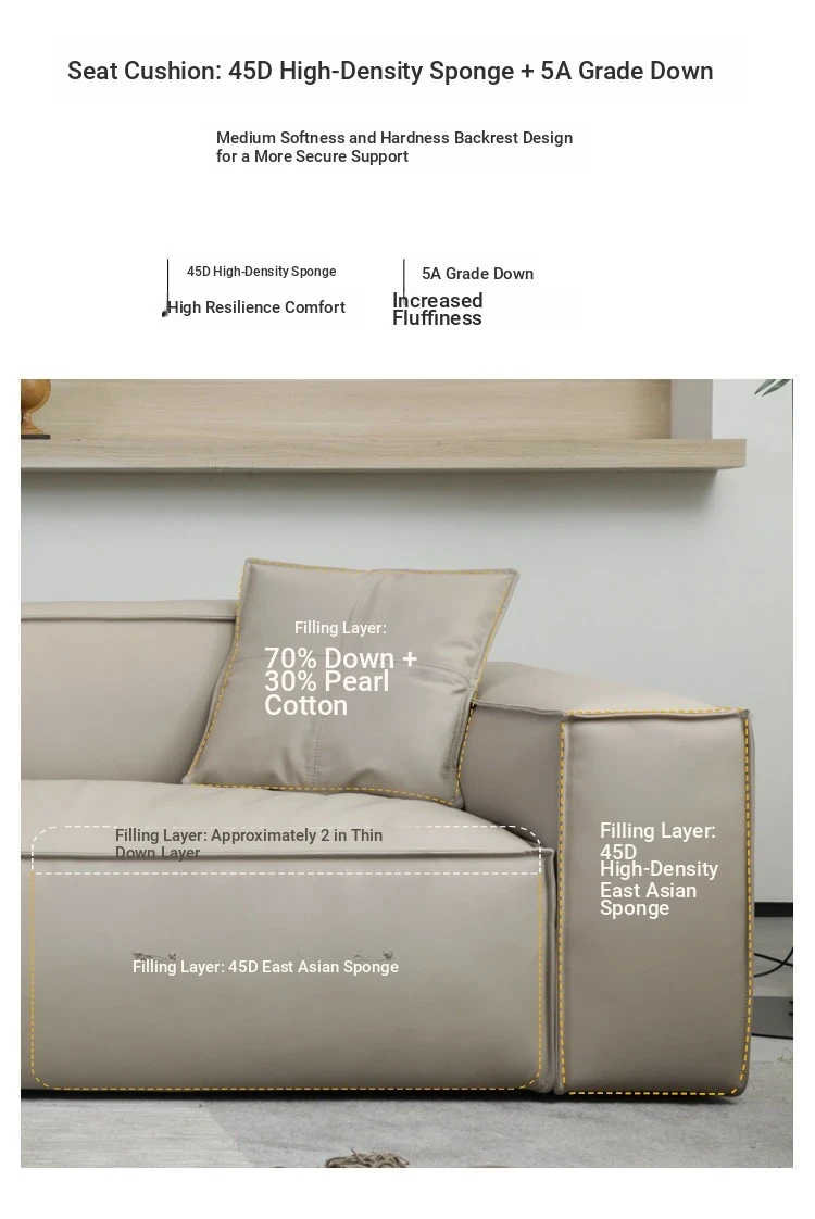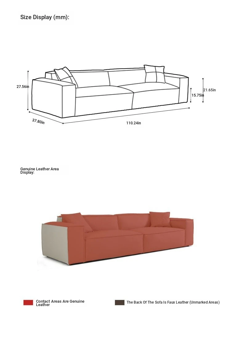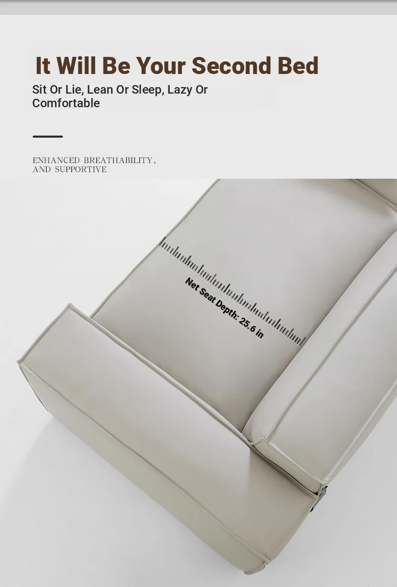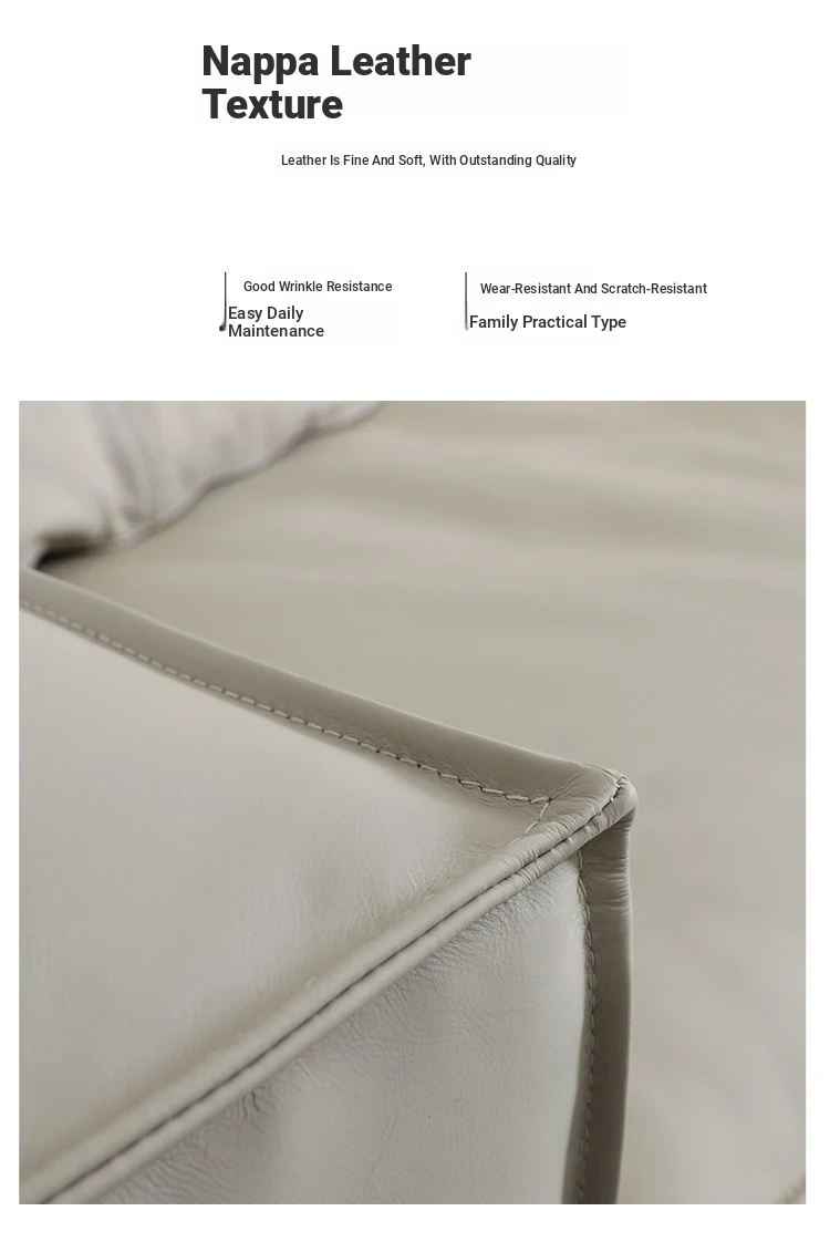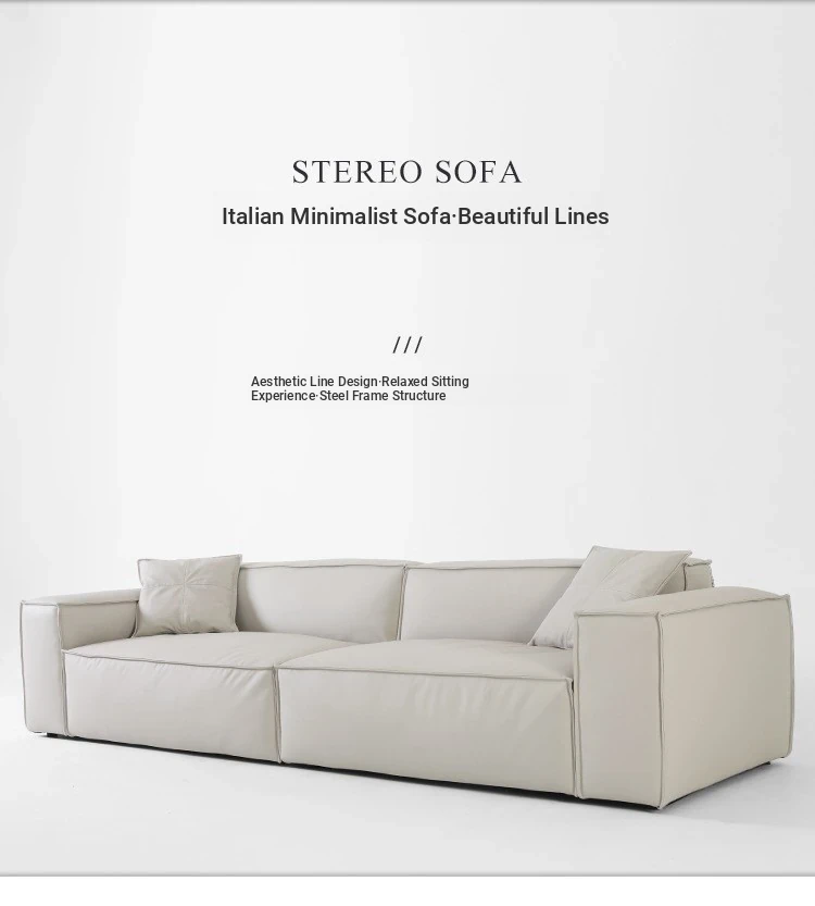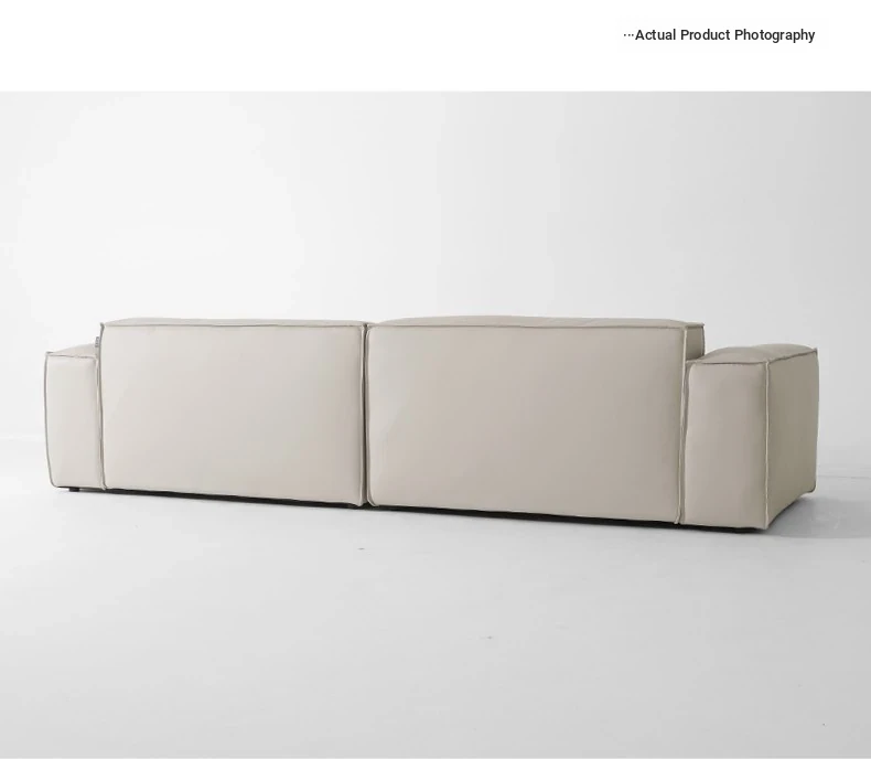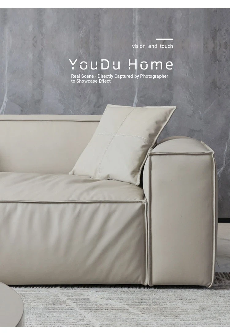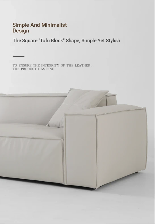 Italian Minimalist Genuine Leather Sofa - Designer Corner Sectional for Small Living Rooms, Modern Simple 3-Seater Tofu Block Design