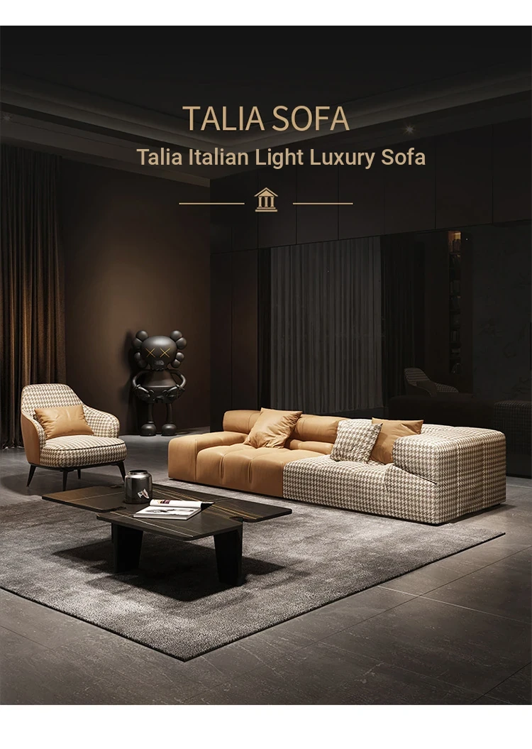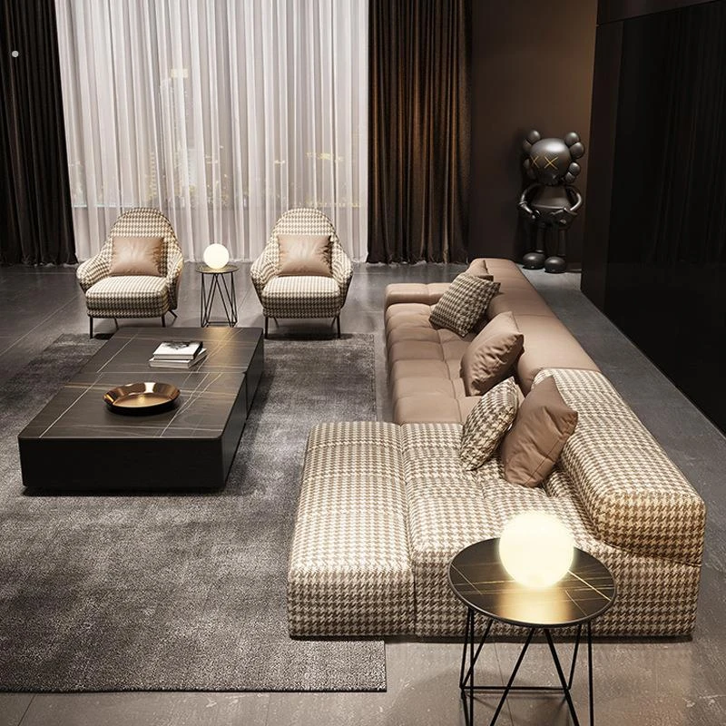 Italian Minimalist Genuine Leather Sofa - Luxurious Corner Living Room Furniture for Villas - Modern Chic Upholstered Design in Post-Modern Style