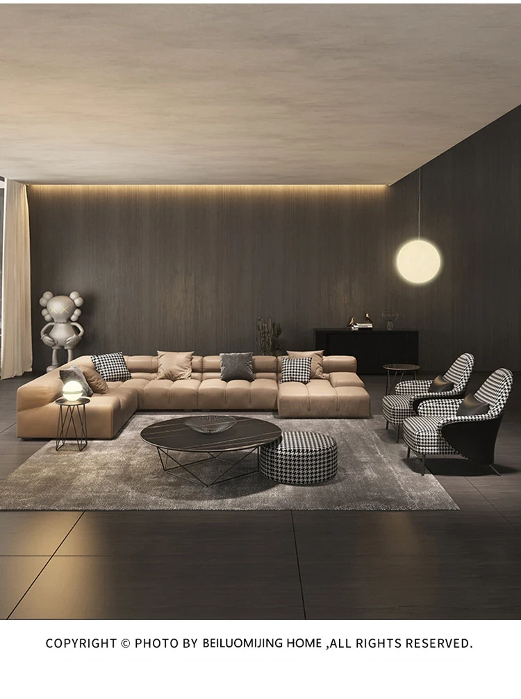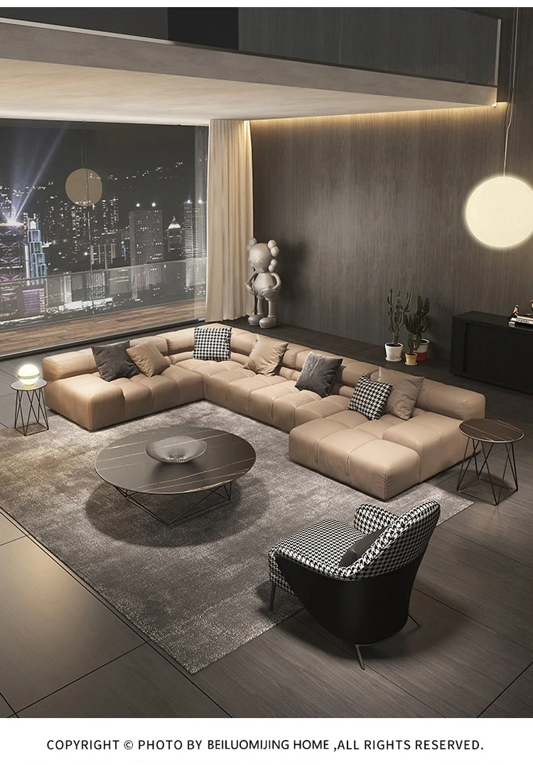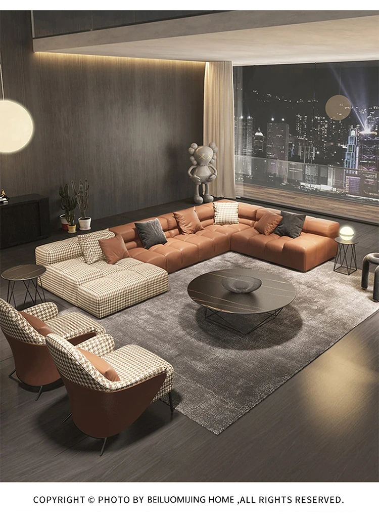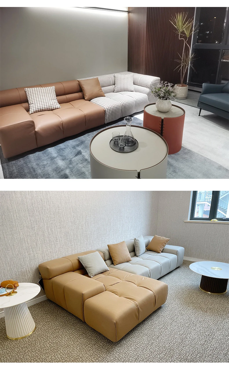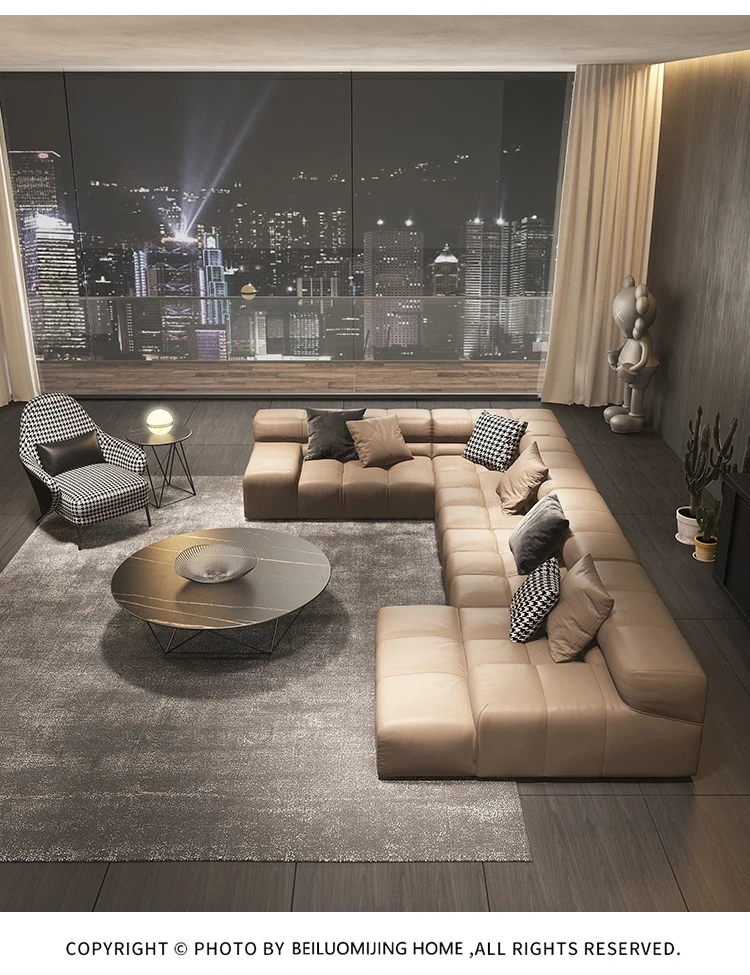 イタリアンミニマリズムの本革ソファ|ラグジュアリーなイタリア製コーナーリビング家具|モダンでシンプルなデザインのヴィラ向け|ポストモダンスタイルでおしゃれな空間を演出!