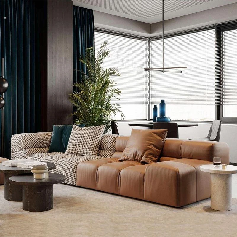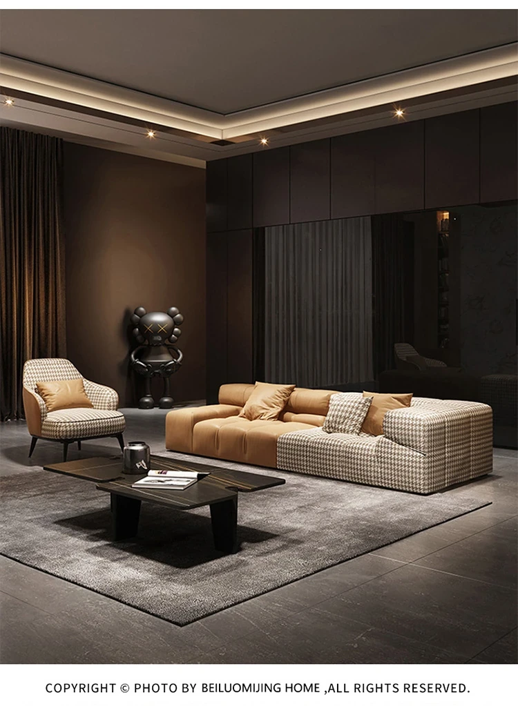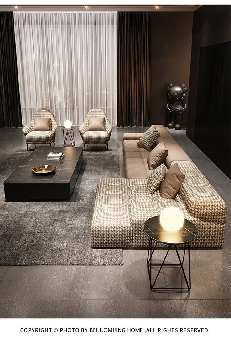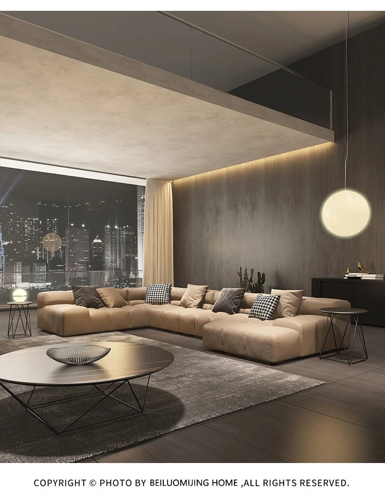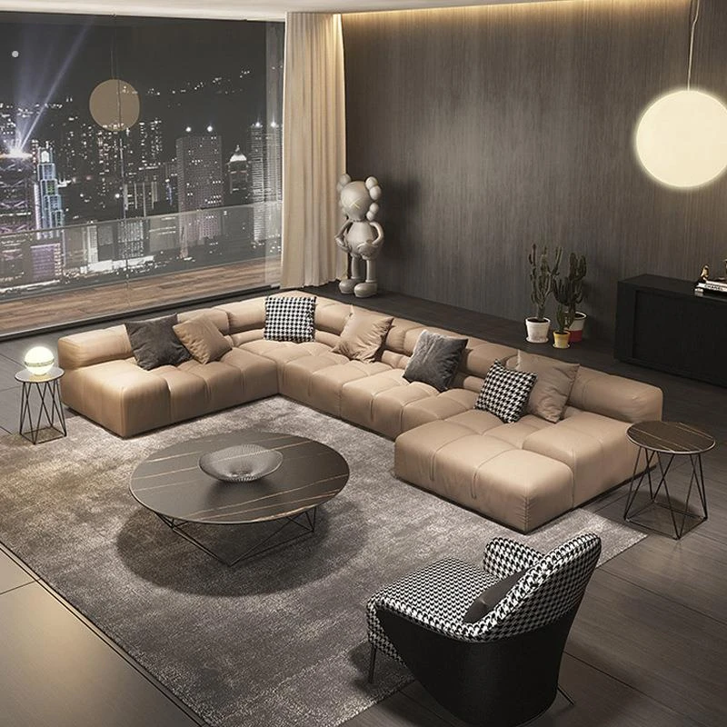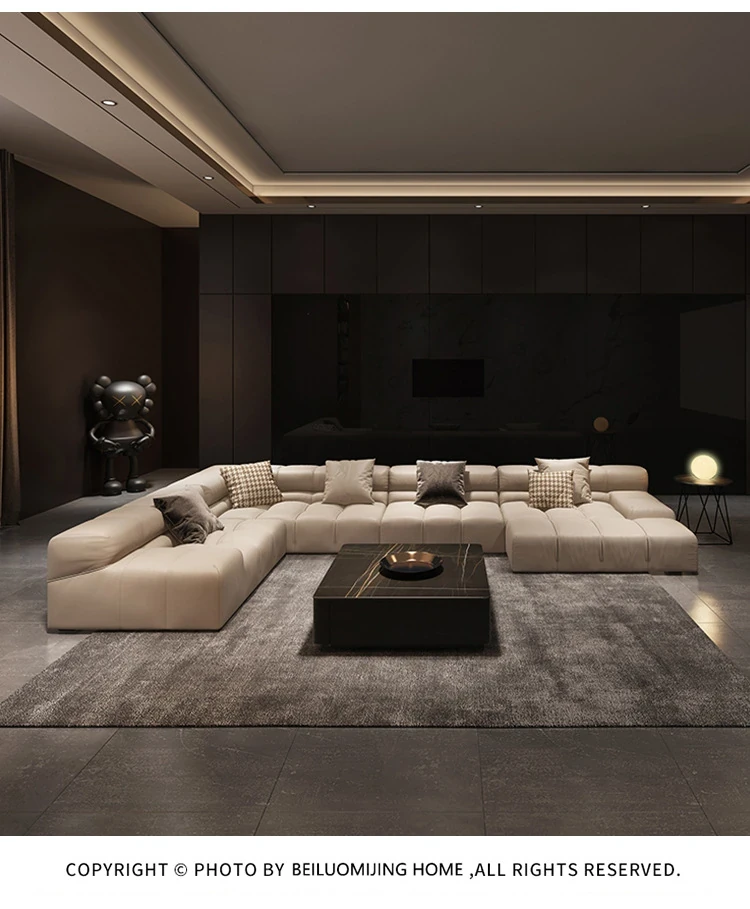 イタリアンミニマリズムの本革ソファ|ラグジュアリーなイタリア製コーナーリビング家具|モダンでシンプルなデザインのヴィラ向け|ポストモダンスタイルでおしゃれな空間を演出!