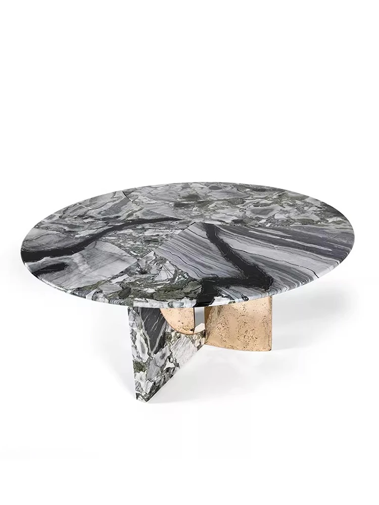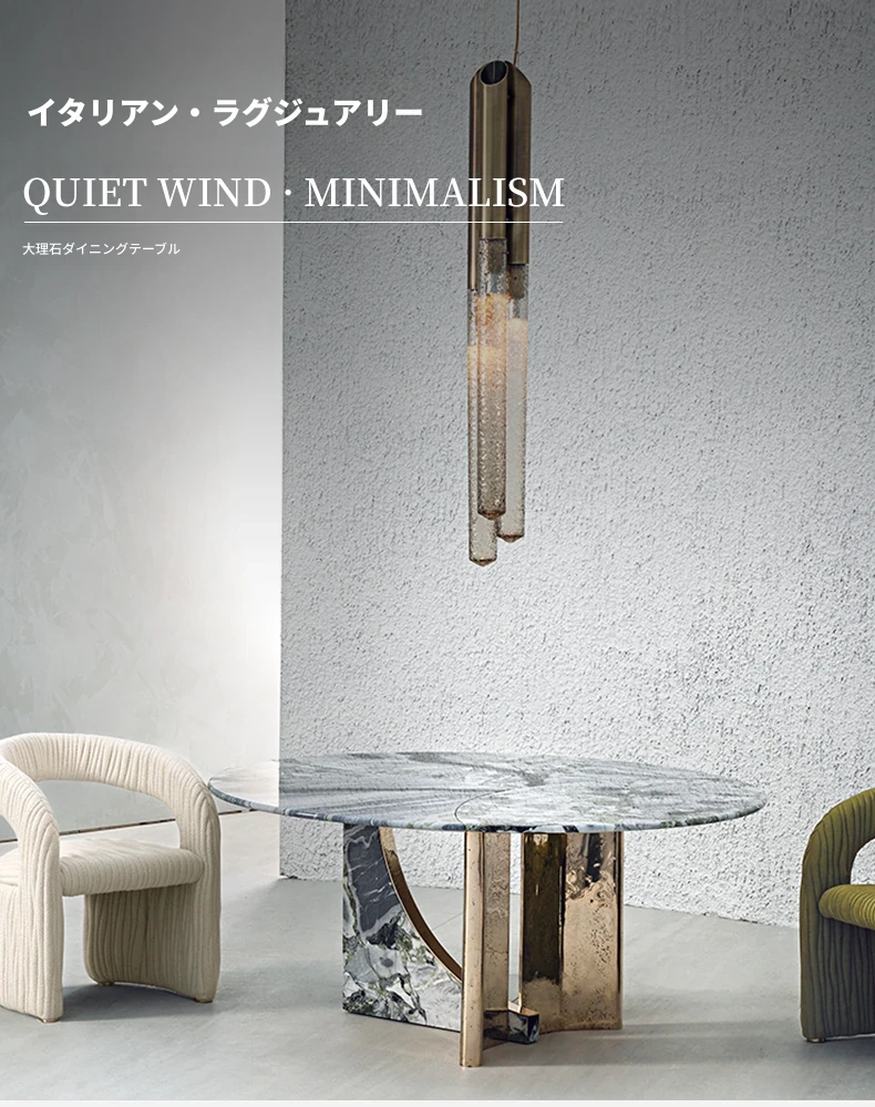 イタリアンミニマリズムの贅沢な石製ダイニングテーブル - デザイナーによる大理石のラウンドテーブル、モダンで洗練された別荘スタイルの軽やかさを楽しむ!