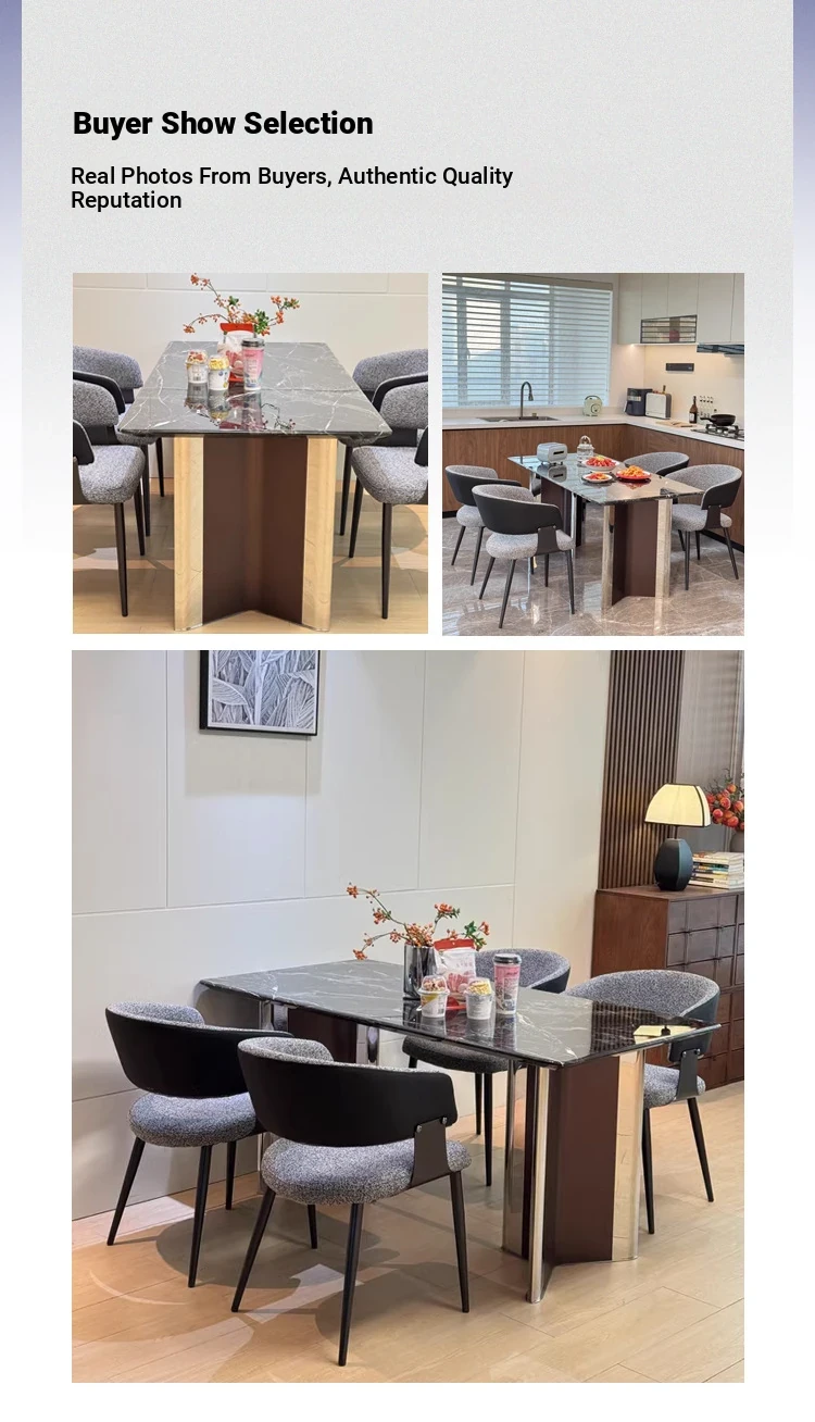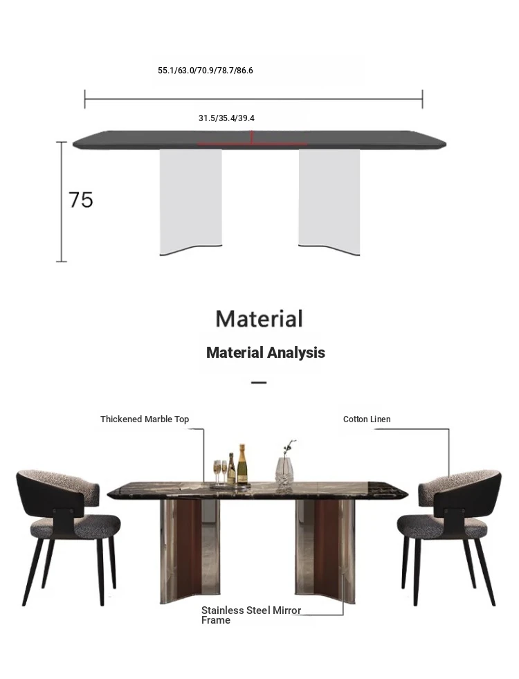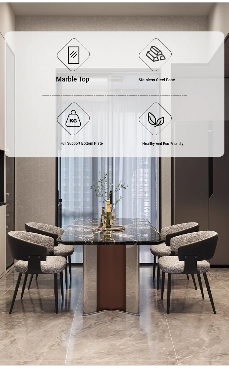 Italian Minimalist Luxury Marble Dining Table Set for Small Spaces - Elegant Rectangular Table with Chairs, Perfect for Stylish Home Decor