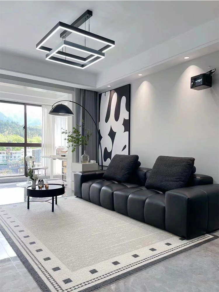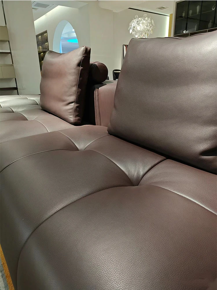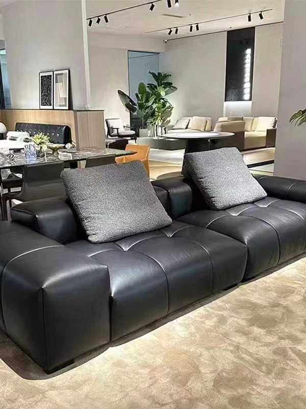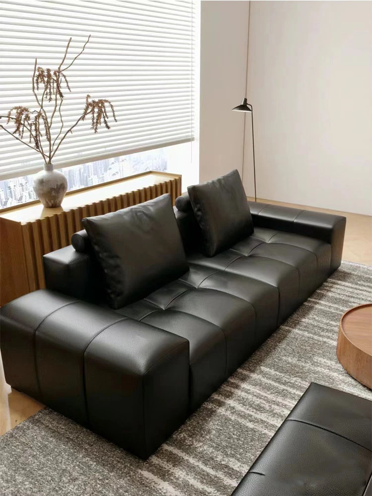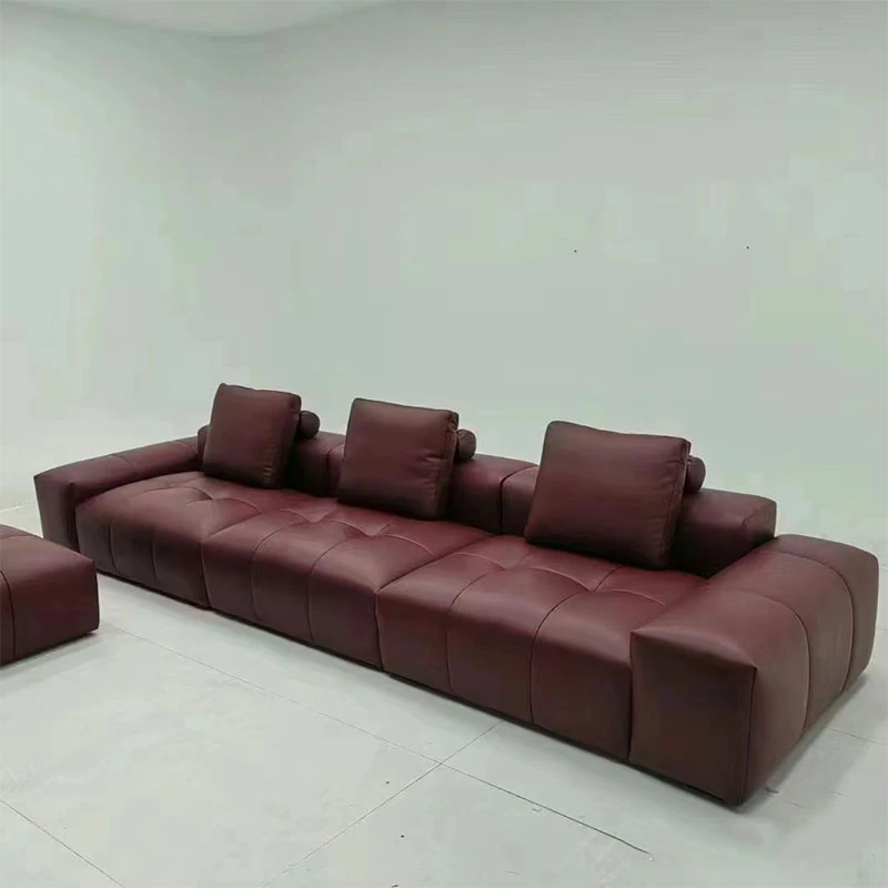 イタリアンミニマルスタイルのサバピクセルモジュラートーフブロック本革ソファ。広々としたリビングにぴったりのヴィラ用フラット階層ソファセット。洗練されたデザインで、快適さとスタイルを両立!
