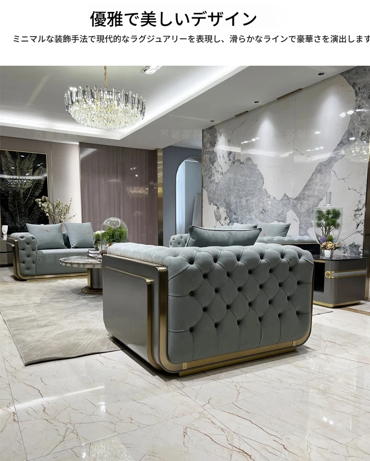 イタリアンラグジュアリー マット仕上げ 本革ソファ モダンヴィラ用 ベンツスタイル 高級感あふれる広々リビングにぴったりなラグジュアリーソファ