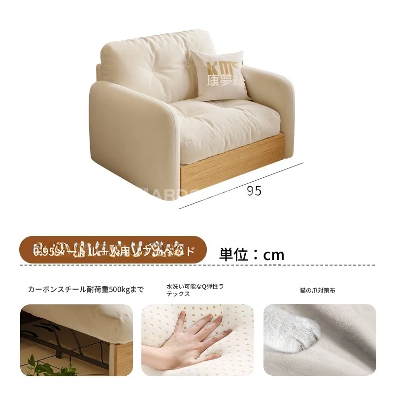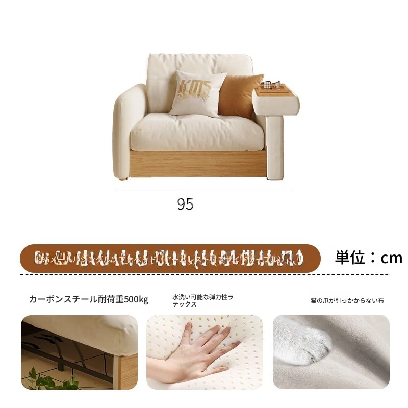 0.95メートルシングルソファベッド(アーム付きテーブル) 猫の爪とぎ布-ラテックスタイプ