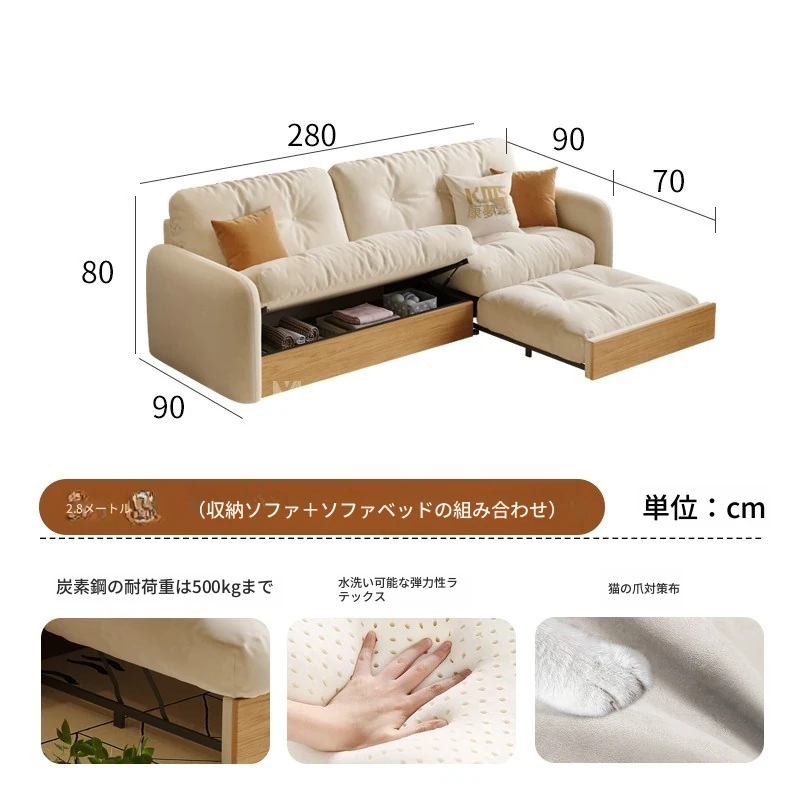 2.8メートル(収納ソファ+ソファベッドセット) 猫の爪とぎ布-ラテックスタイプ