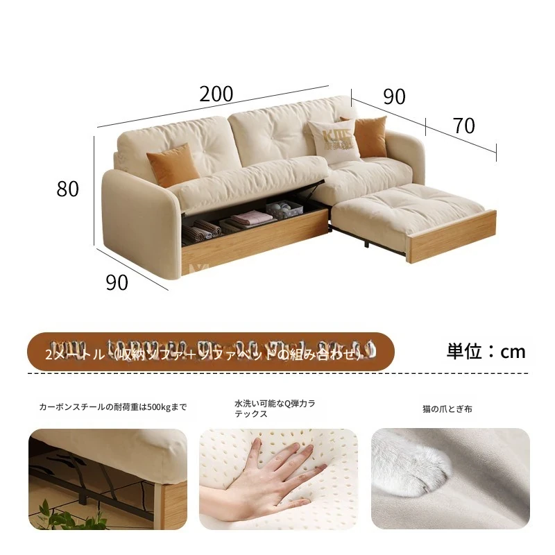 2メートル(収納ソファ+ソファベッドセット) 猫の爪とぎ布-ラテックスタイプ