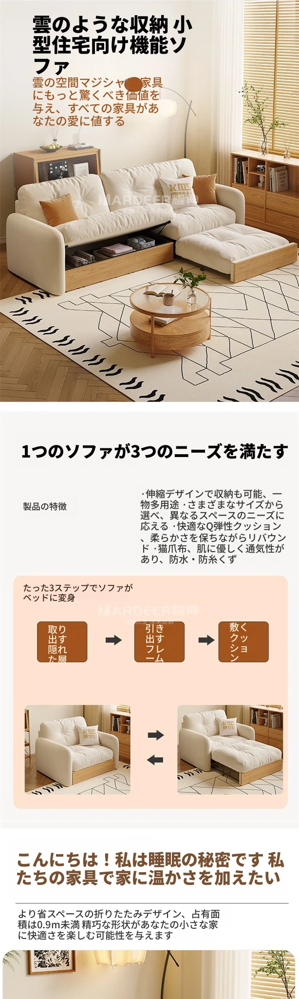 2.4メートル(収納ソファ+ソファベッドセット) 猫の爪とぎ布-ラテックスタイプ