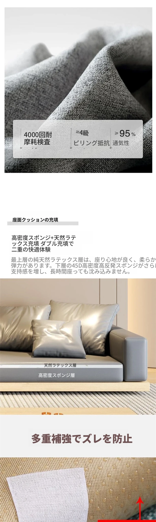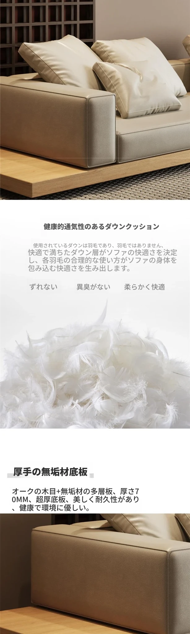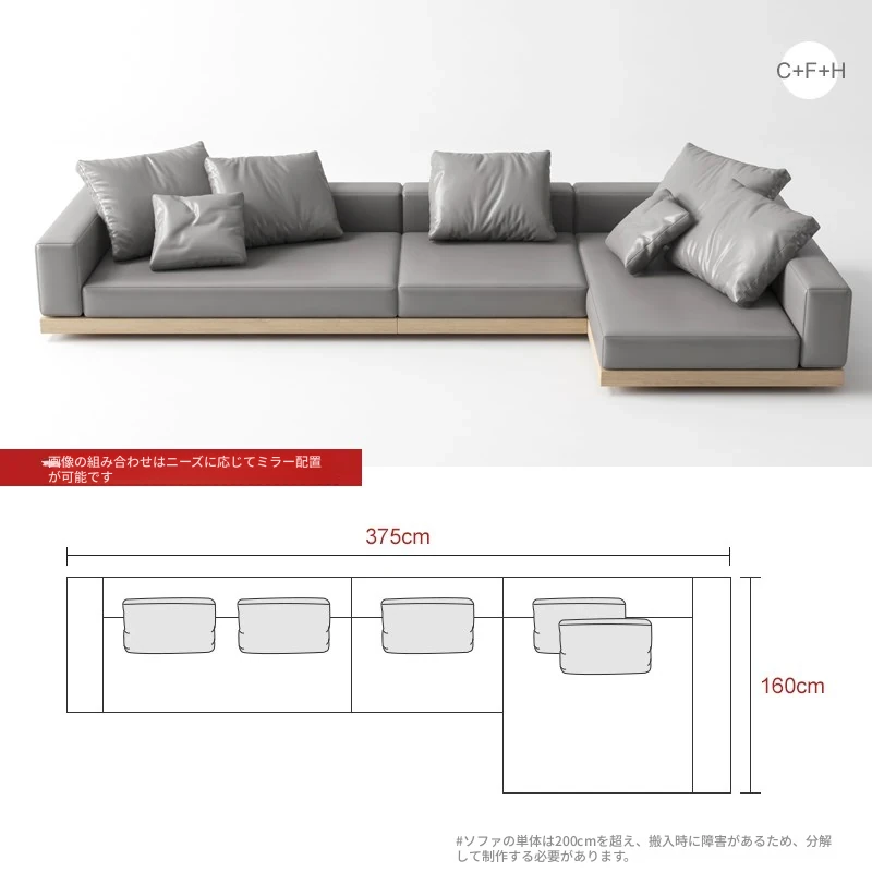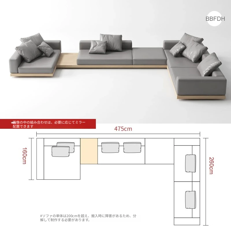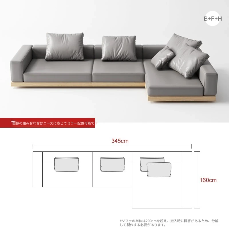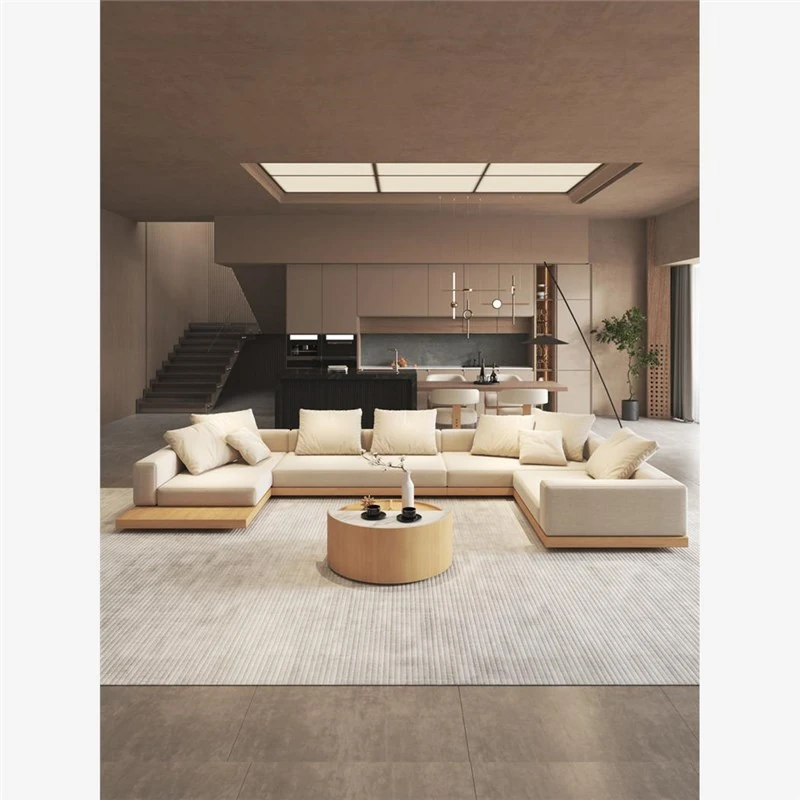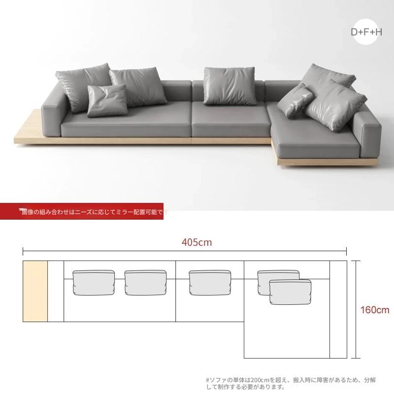侘寂スタイルのL字型ソファ、贅沢なデイベッド付き!大邸宅にぴったりな無垢材使用、ラグジュアリーなリビング空間を演出。高品質なQラテックスとテクニカルファブリックで、快適さとスタイルを両立!