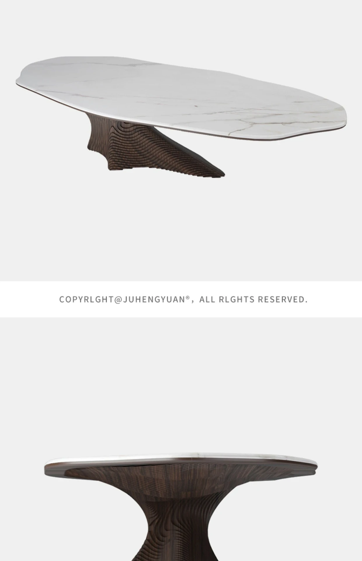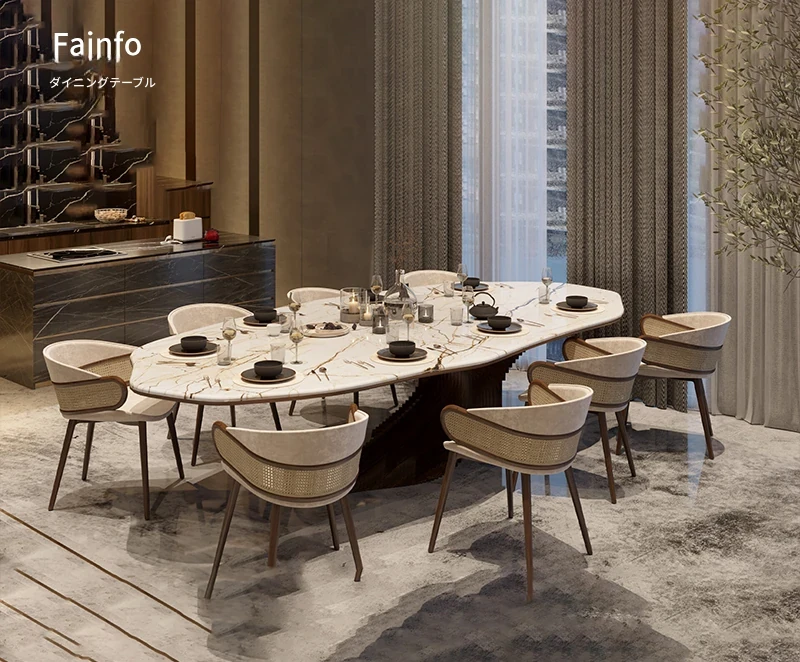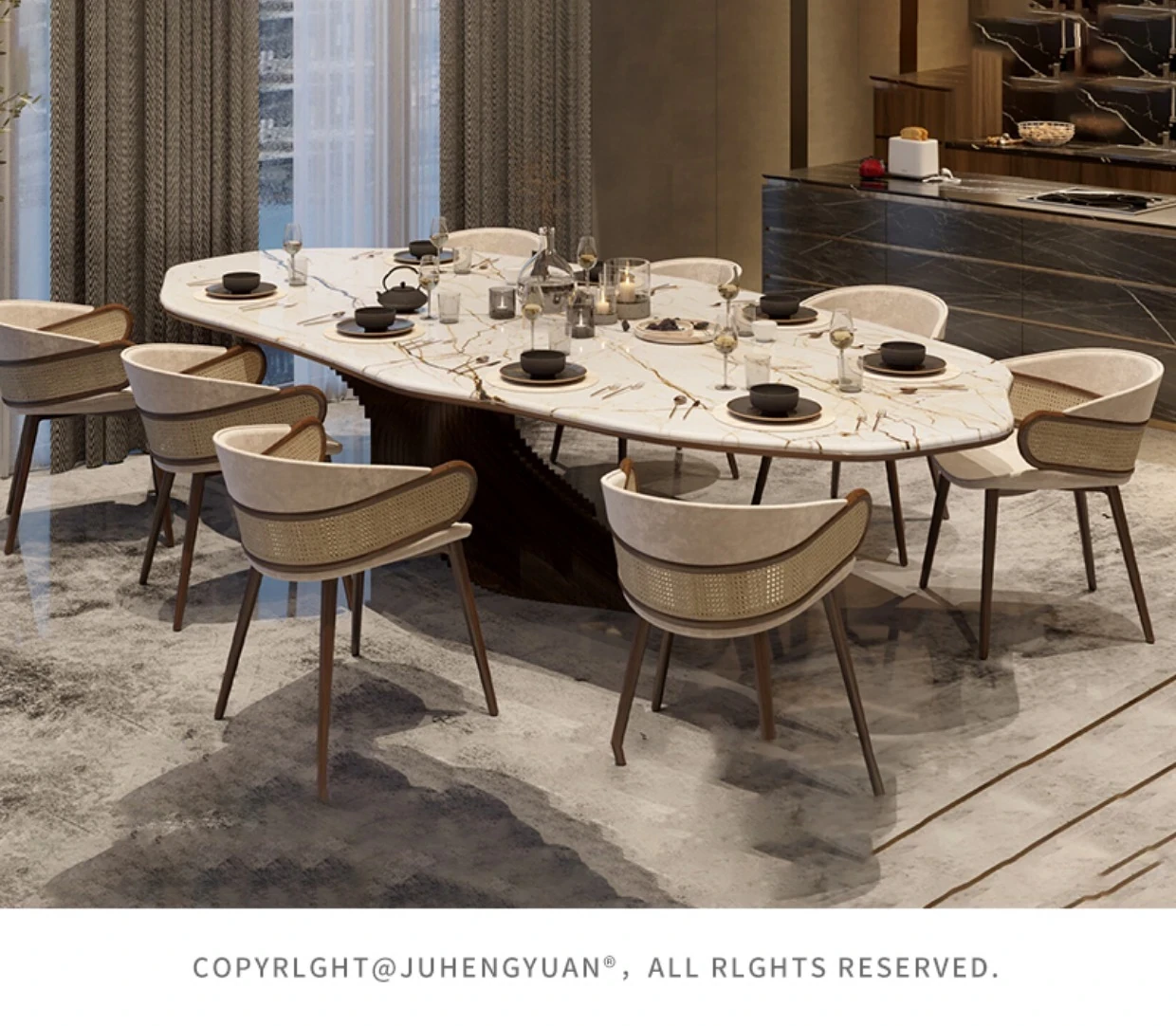 JUHENGYUAN/聚恒缘 天然大理石異形デザインのイタリアンミニマリズム高級ヴィラダイニングテーブル - 洗練されたスタイルで特別なひとときを演出します!