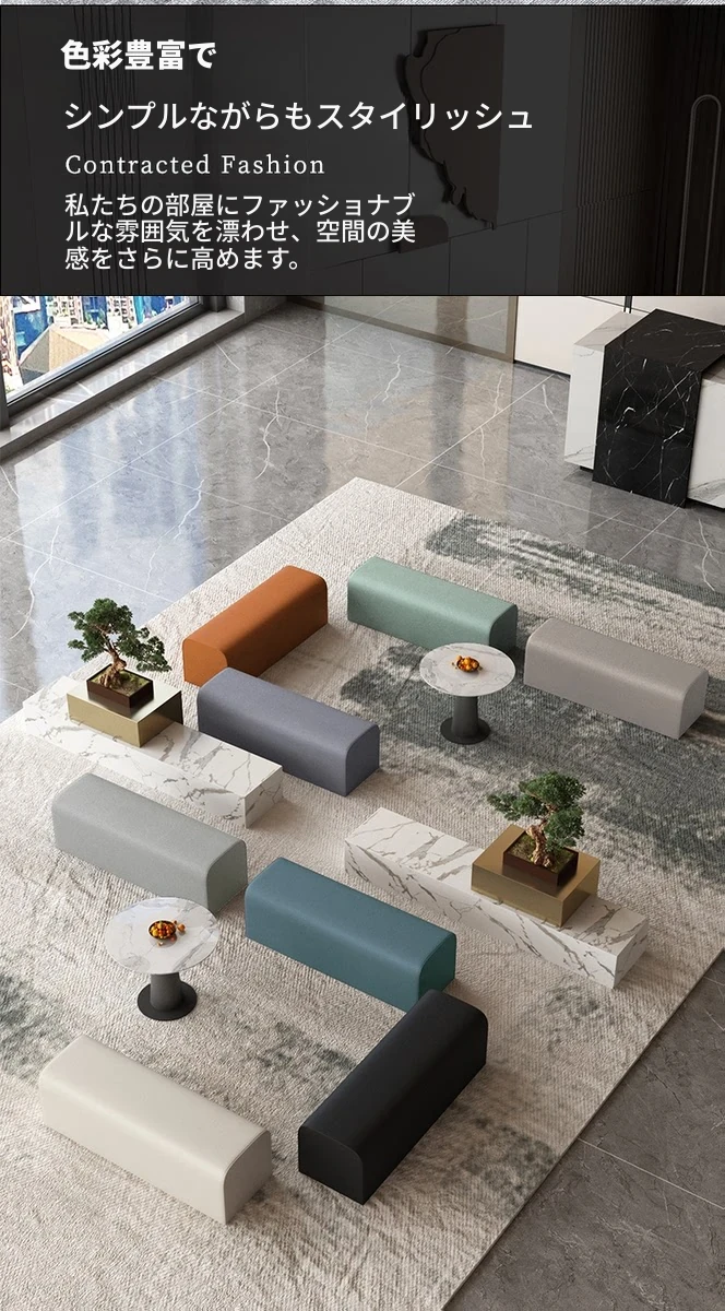 ダンススタジオやオフィスの休憩スペースに最適!長方形ベンチソファ、来客用の快適なシーティング、ファッションストアにもぴったり。おしゃれで機能的なデザインが魅力のカウンターベンチ!