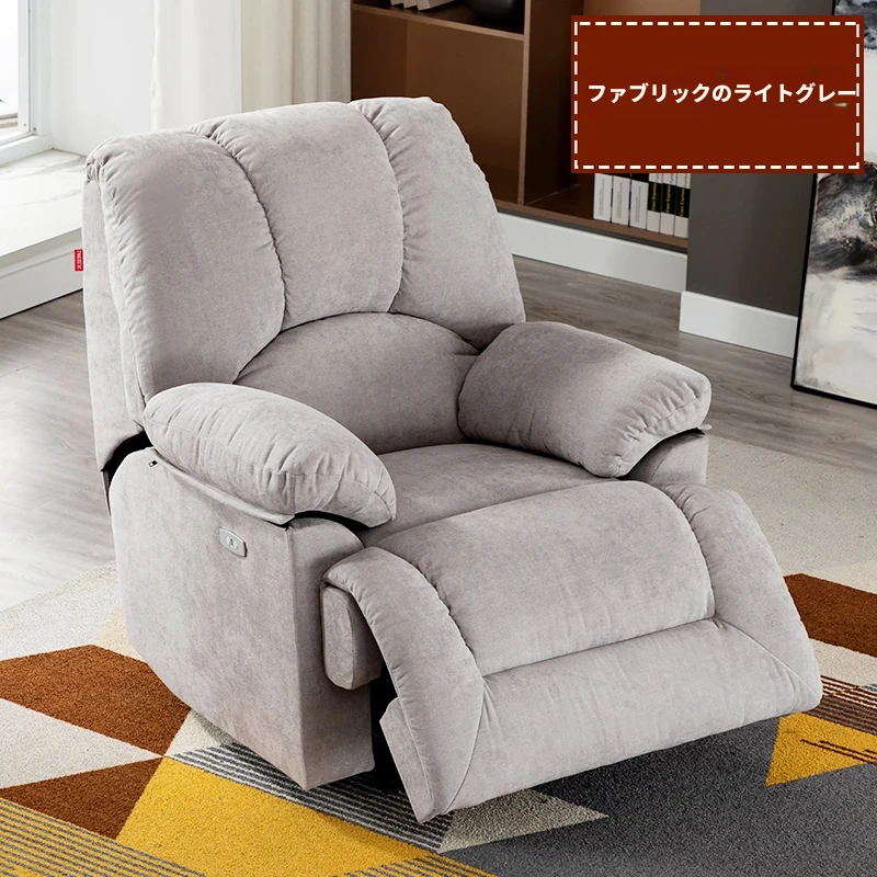 欧州風デザインの電動リクライニングソファ|一人用のラグジュアリーな布製&レザーコンビ|映画鑑賞やリラックスタイムに最適な多機能カウチ|家庭用シアターにもぴったり!