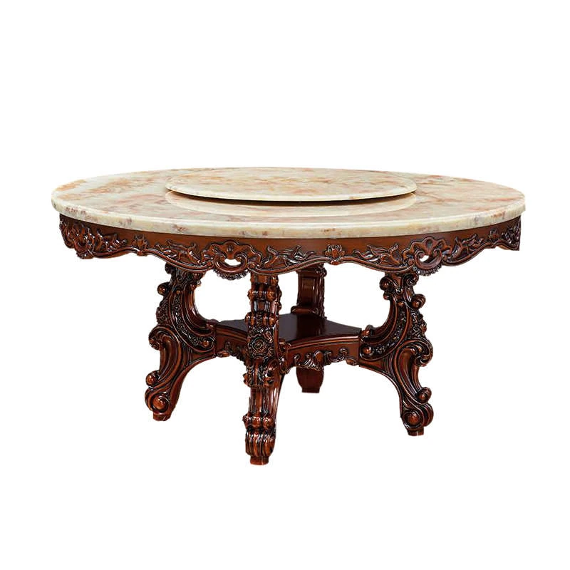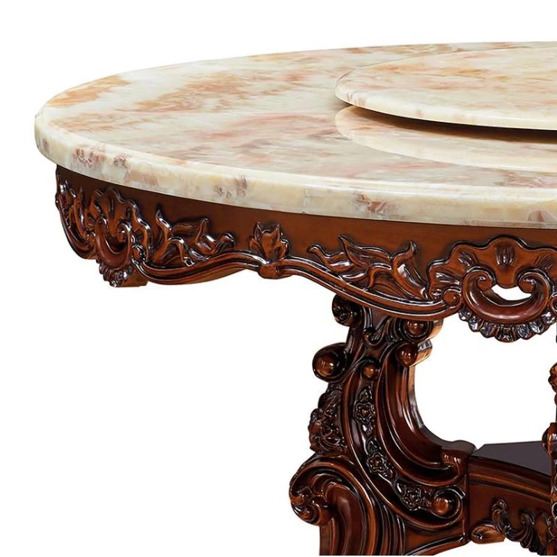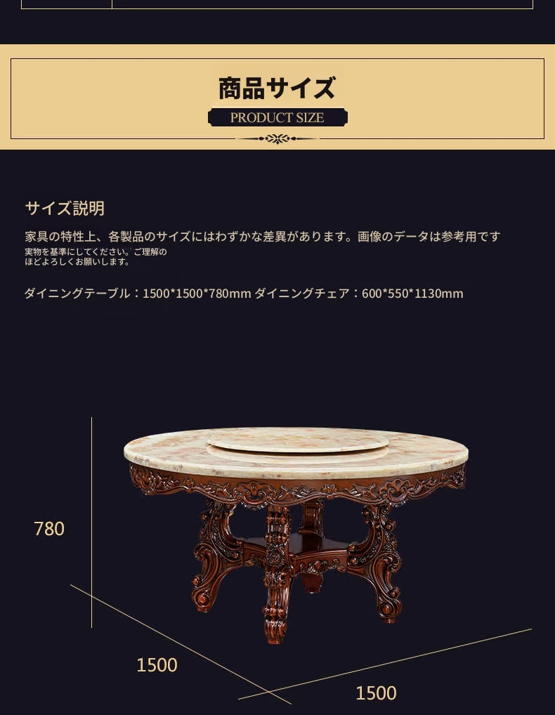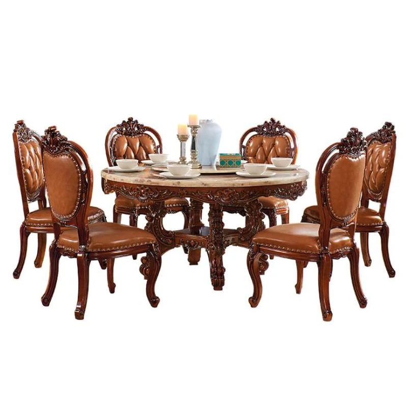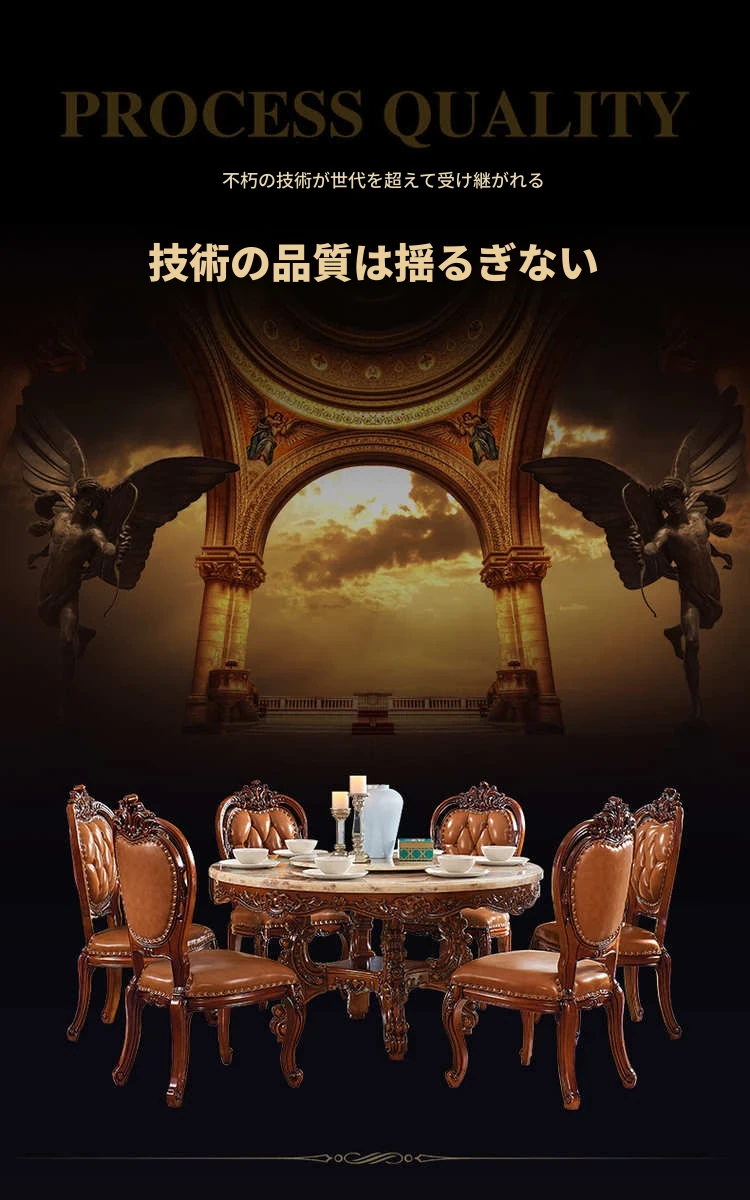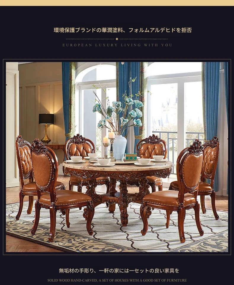 欧風天然大理石ダイニングテーブル|アメリカンスタイルの無垢オーク材使用|新古典的なラグジュアリーラウンドダイニングセット|高級感溢れる空間を演出します!