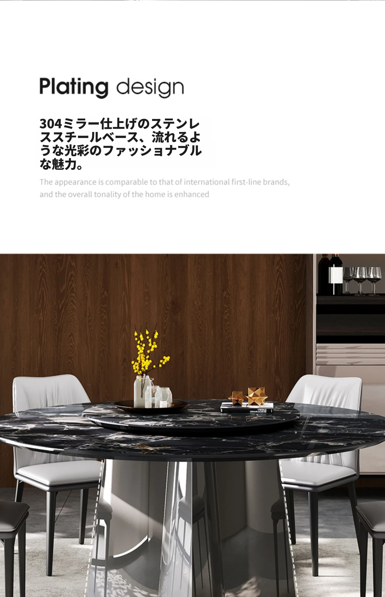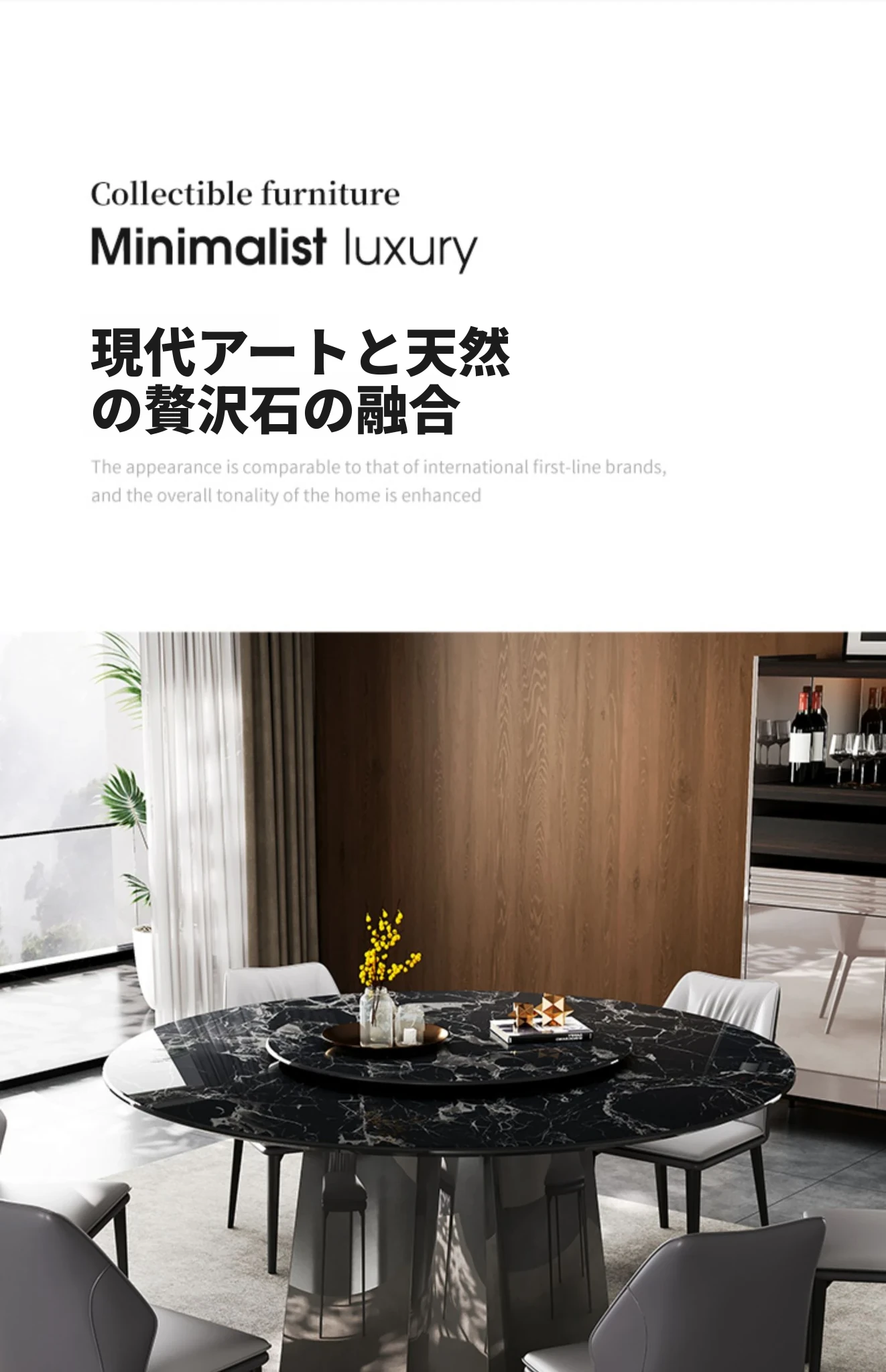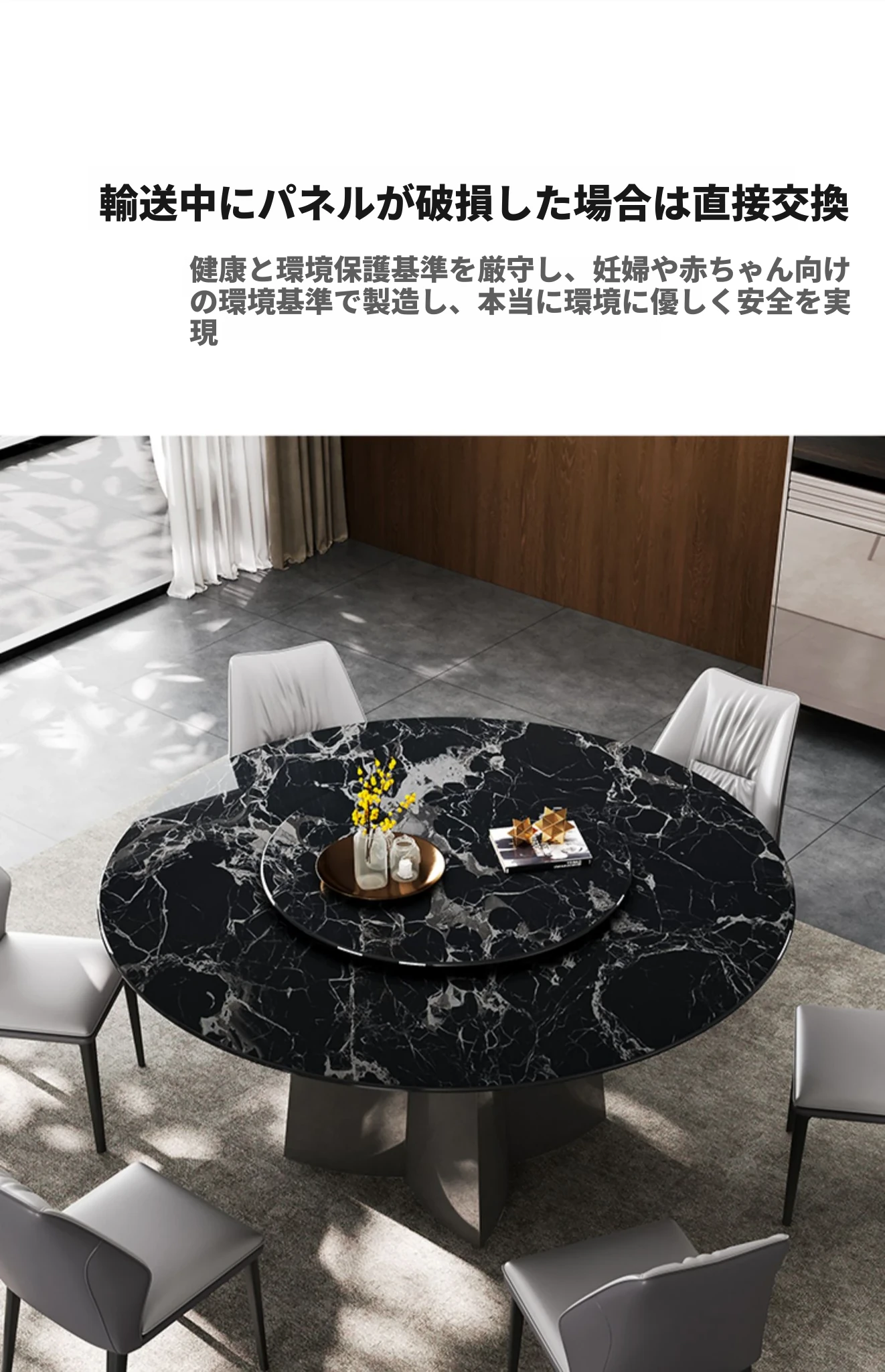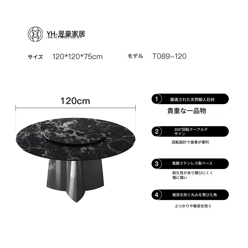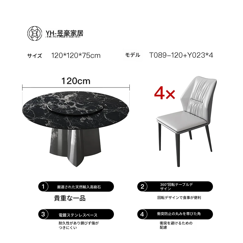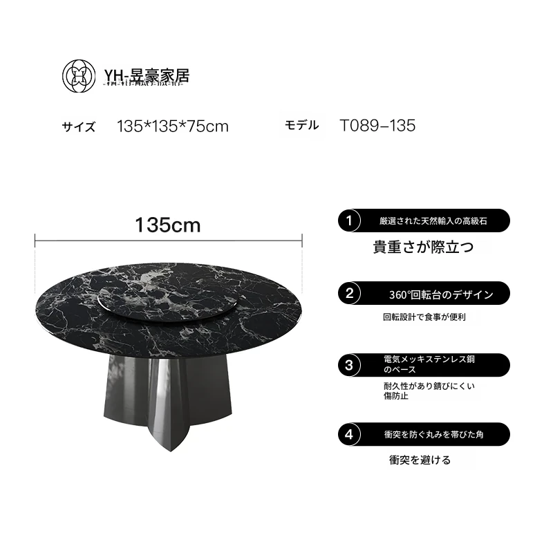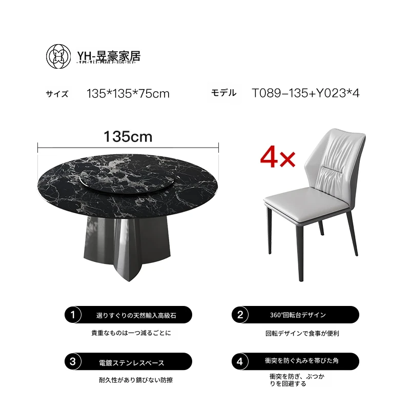 天然ブラックローズラグジュアリー石製ダイニングテーブル/1.35メートル+ダイニングチェア*4 30日以内に発送