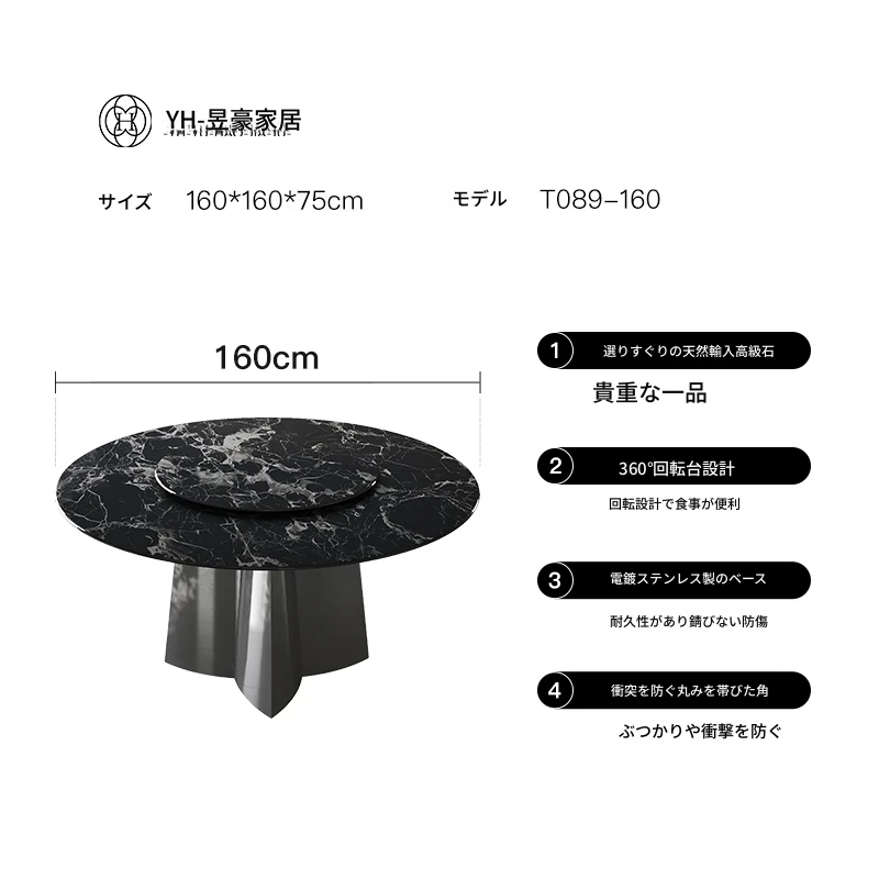 天然ブラックローズラグジュアリー石製ダイニングテーブル/1.6メートル 30日以内に発送