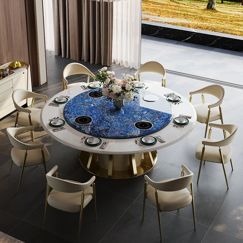 電動ダイニングテーブル/カリアイスジャスパー1.8m天板+1.1m(ボリビア豪石)回転台