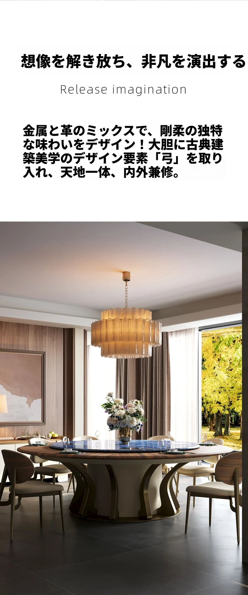 電動ダイニングテーブル/カリアイスジャスパー2.2m天板+1.5m(ボリビア豪石)回転台