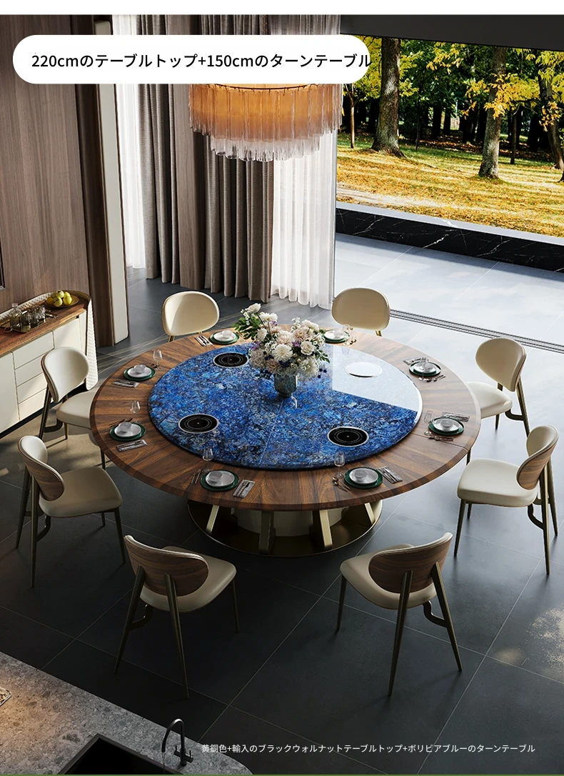 電動ダイニングテーブル/輸入ブラックウォールナット2.2m天板+1.50m(ボリビア豪石)回転台