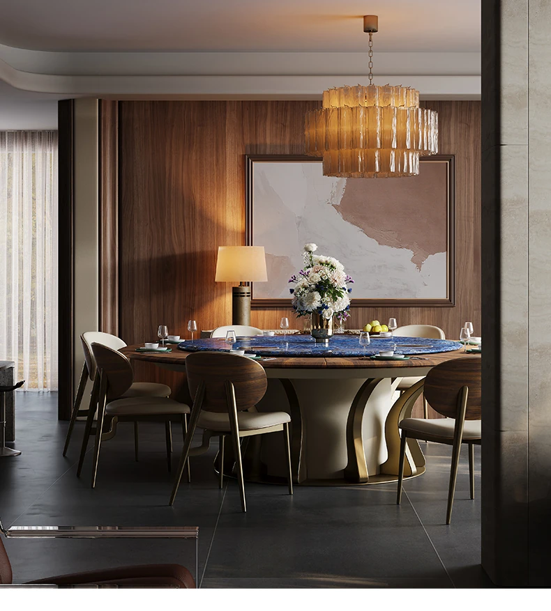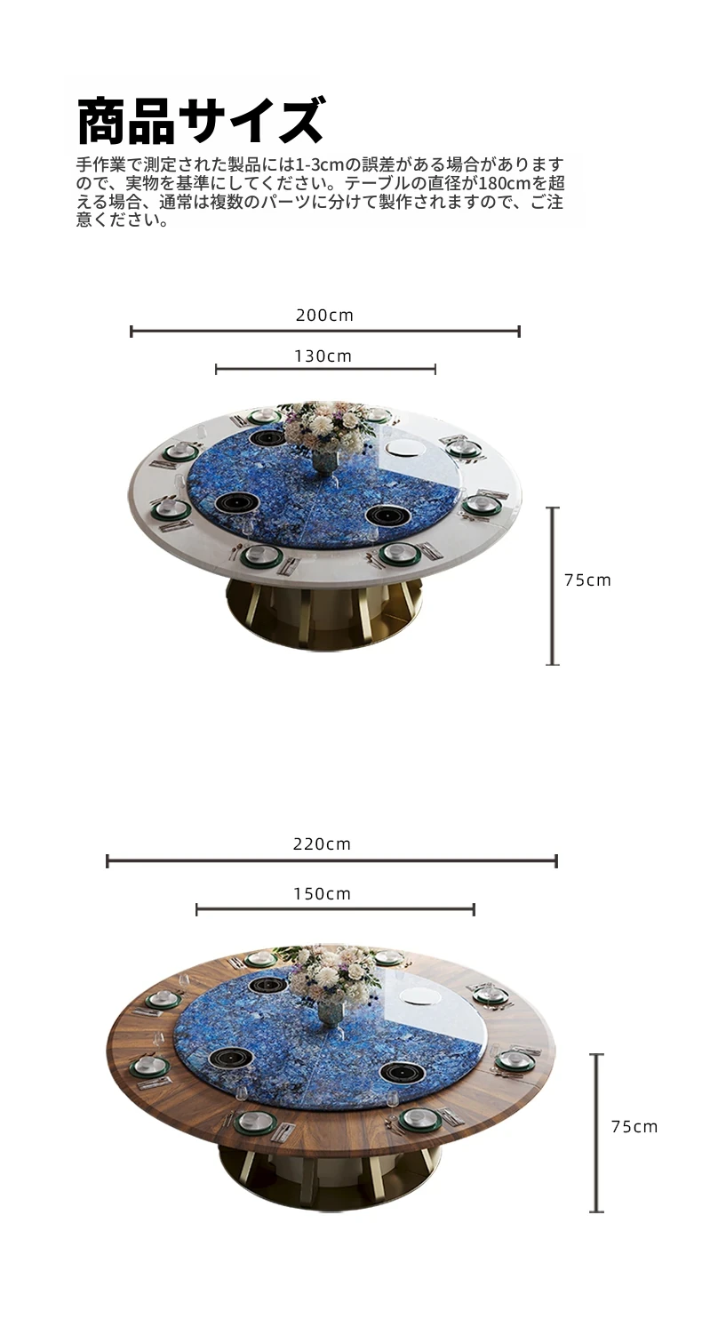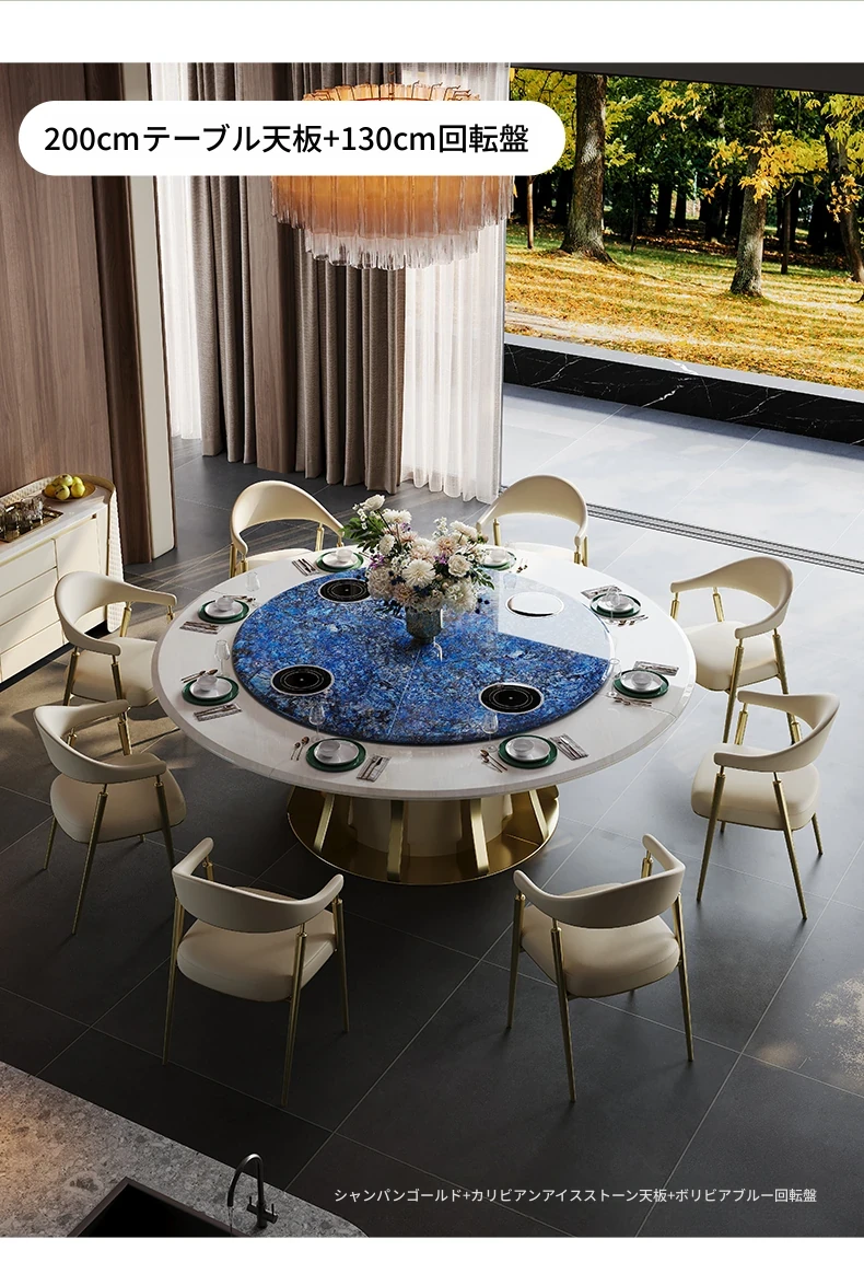 電動ダイニングテーブル/カリアイスジャスパー2m天板+1.3m(ボリビア豪石)回転台