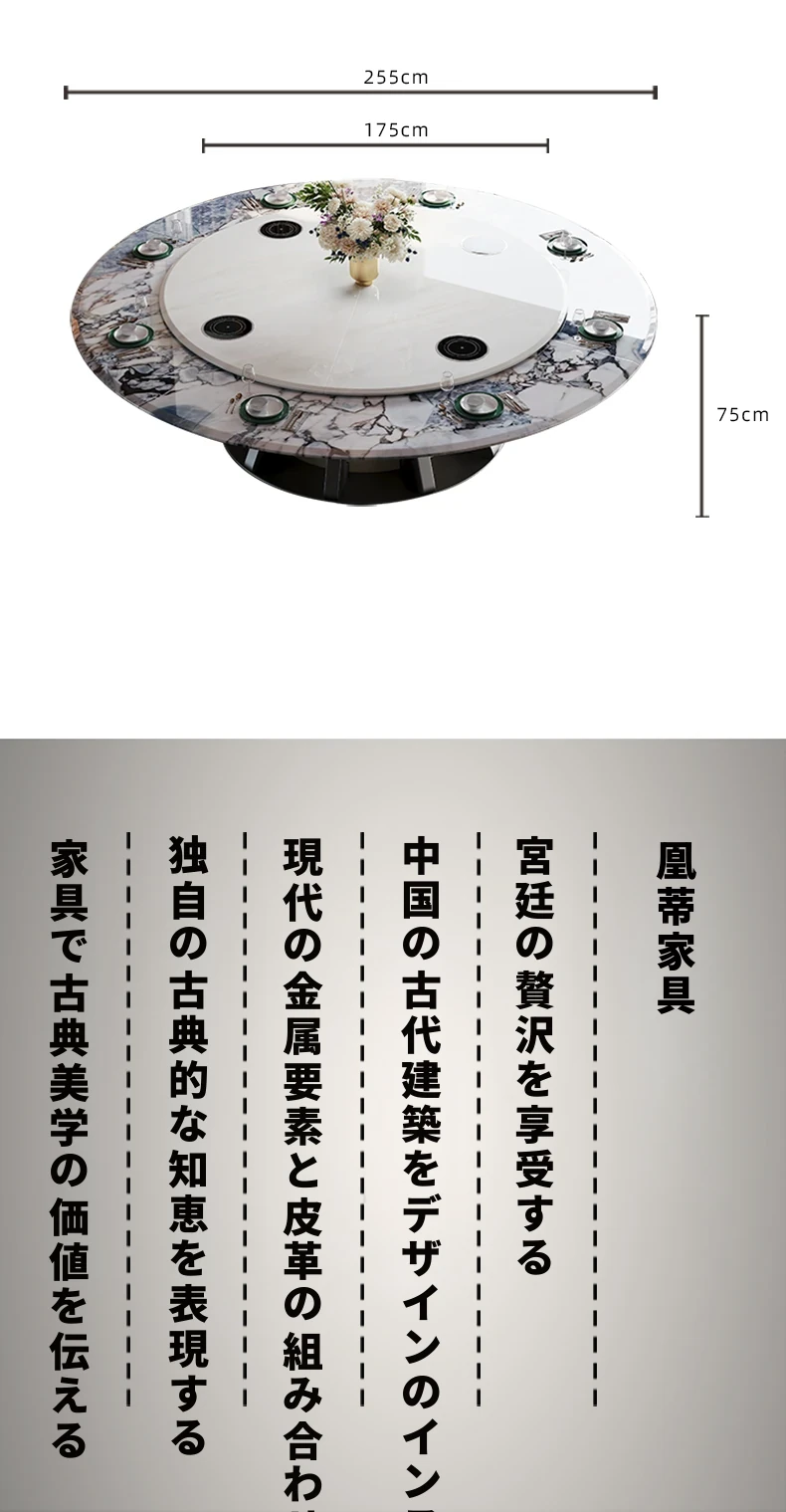 電動ダイニングテーブル/エレファントホワイト2.55m天板+1.75m(ボリビア豪石)回転台
