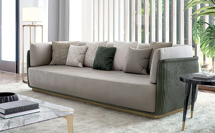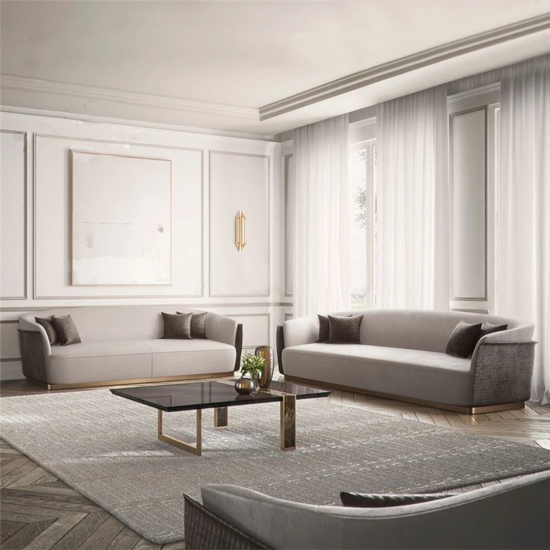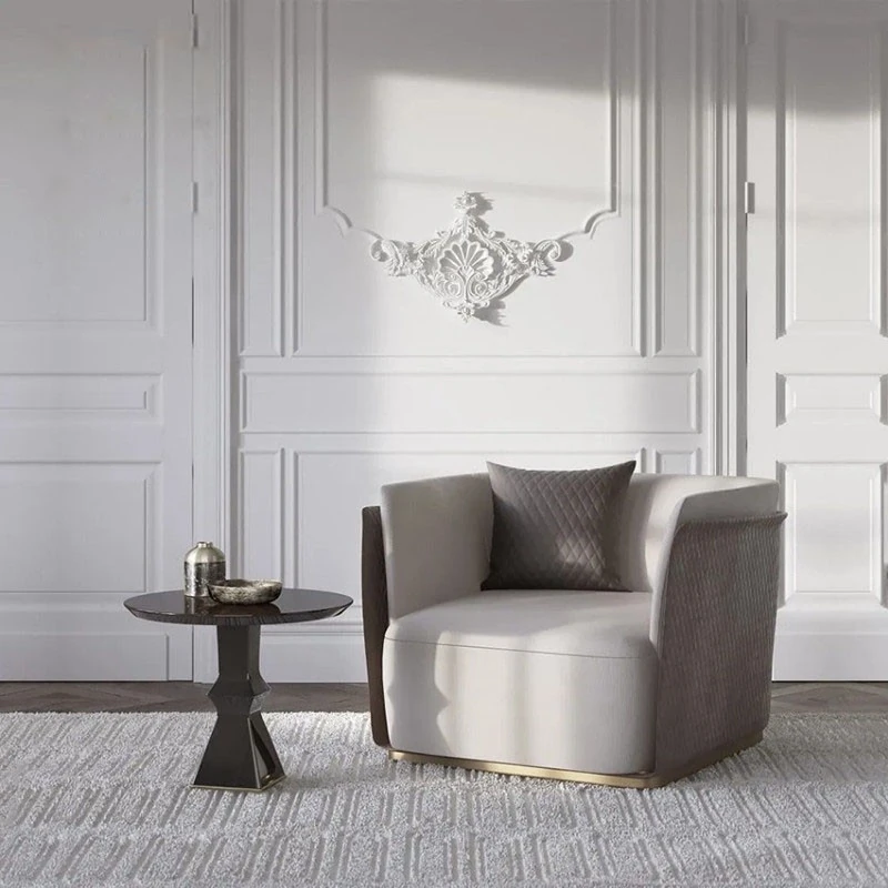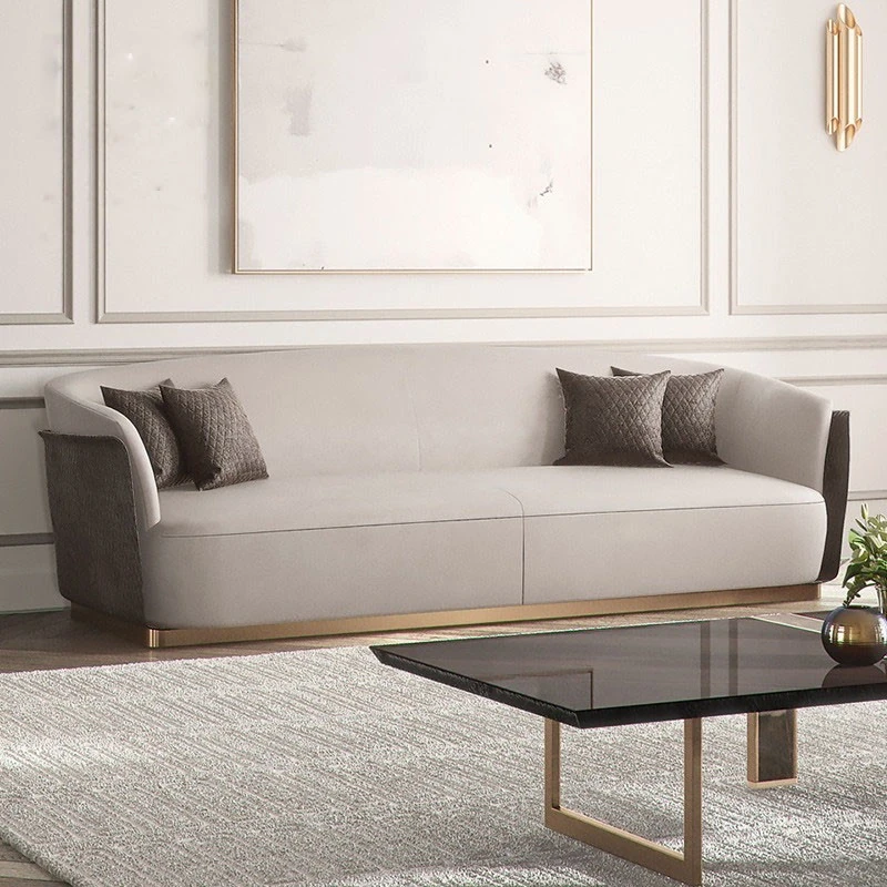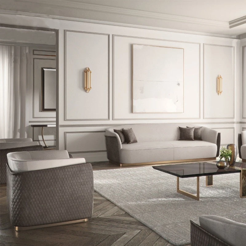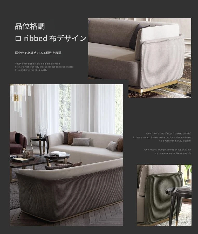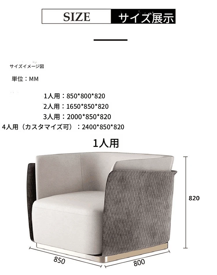 高級感あふれる軽やかなレザー&ファブリックソファ|一人用・二人用・三人用・四人用|モデルルームやホテル、販売所に最適な接客ソファ|洗練されたデザインでお客様をお迎えします!