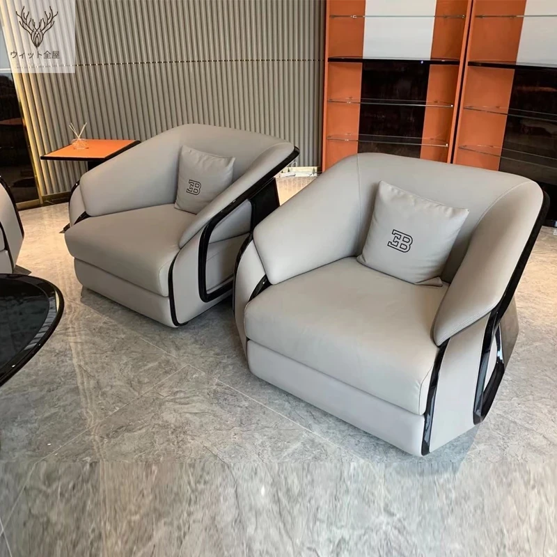 ラグジュアリーな後現代スタイルの本革ブガッティソファセット - ヴィラや広々としたリビングにぴったりなイタリアンシンプル&豪華な家具。洗練されたデザインで、あなたの空間を格上げします!