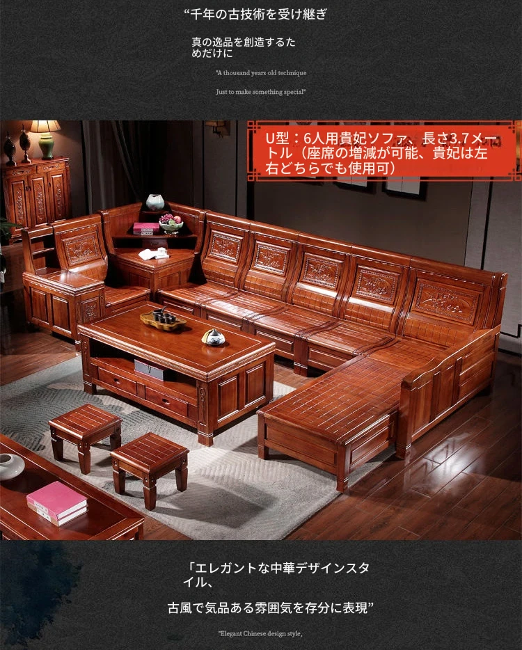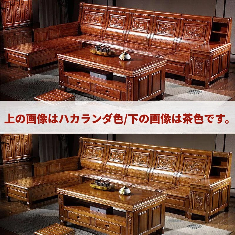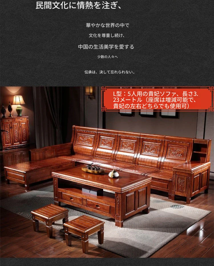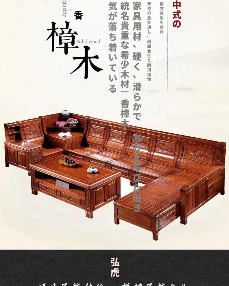 高級新中式香樟木製実木ソファー - 冬夏兼用、彫刻デザインのコーナー貴妃ソファー収納付き!豪華なリビングに最適な組み合わせで、快適さとスタイルを両立!