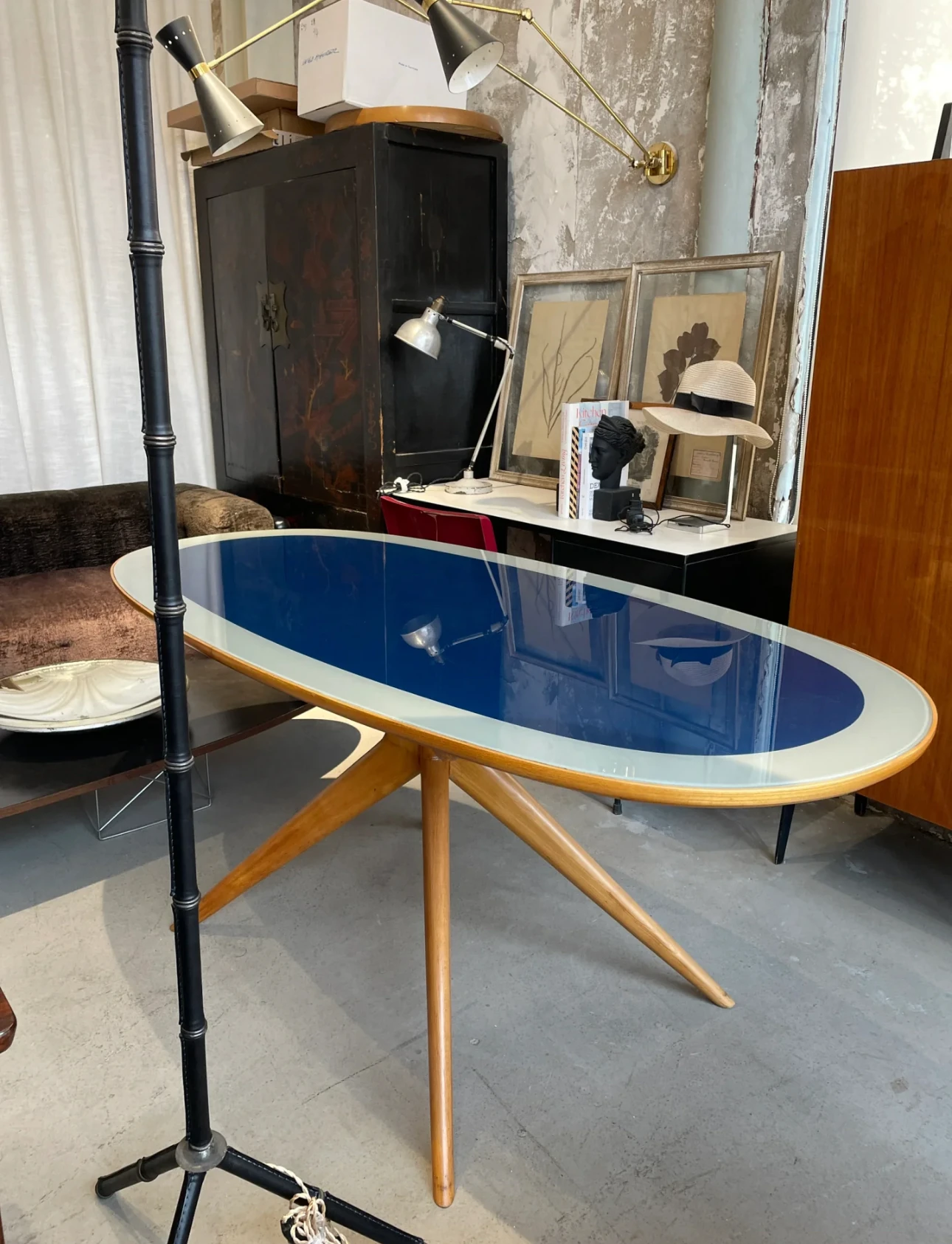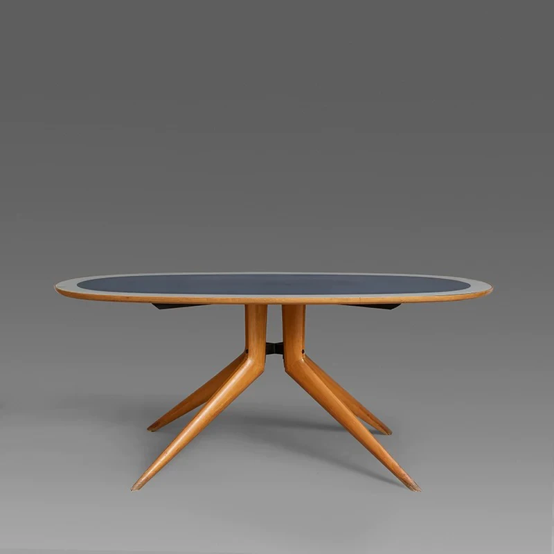 M+Ico Parisiオリジナル1950年代イタリア製ビーチウッドエレガントオーバルダイニングテーブル&チェアセット - 家庭にぴったりな洗練されたデザインで、温かみのある食卓を演出!
