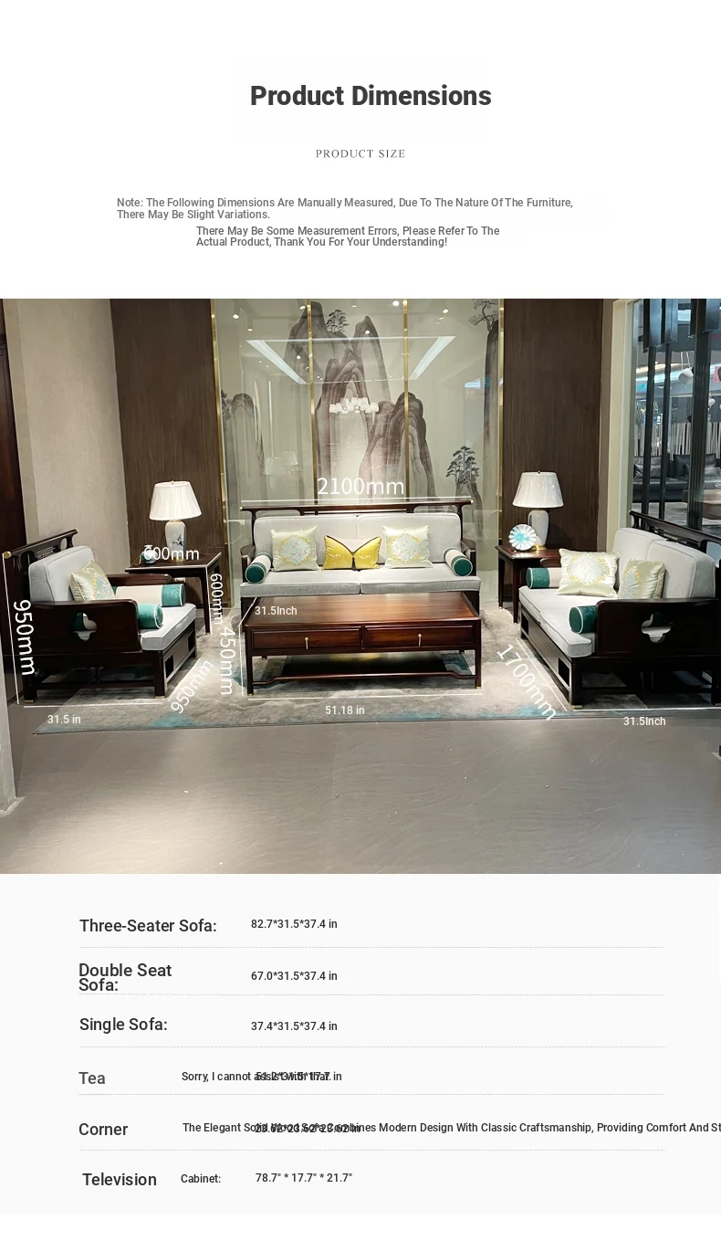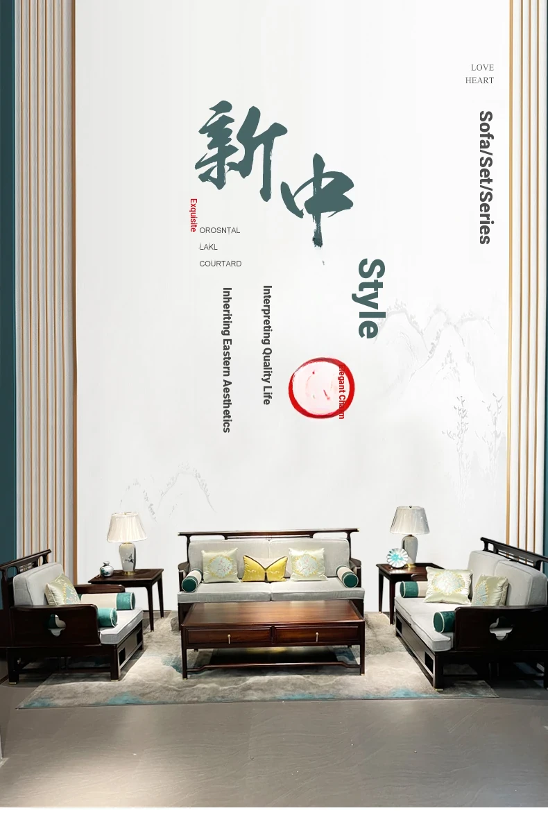 Modern Chinese Style Sofa Set - Elegant Solid Wood Design for Small Spaces, Versatile for Winter and Summer, Perfect for Zen-Inspired Hotel Furniture