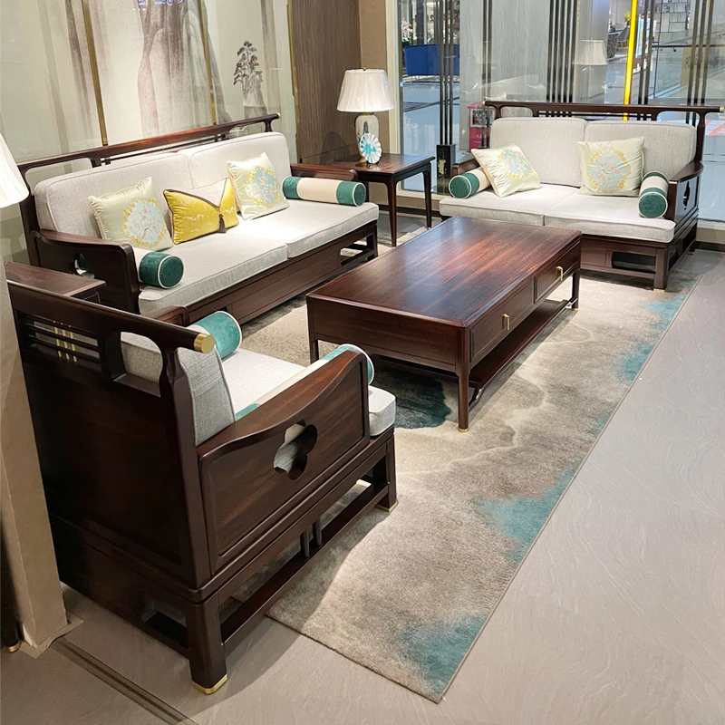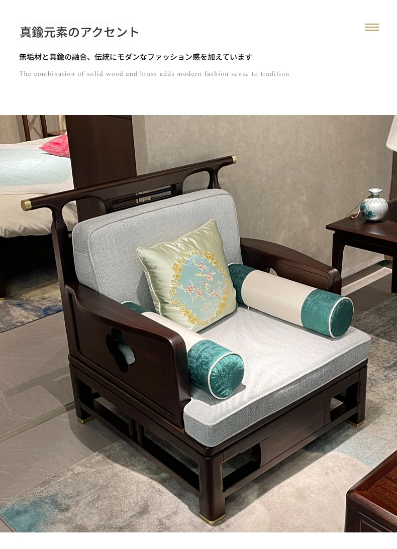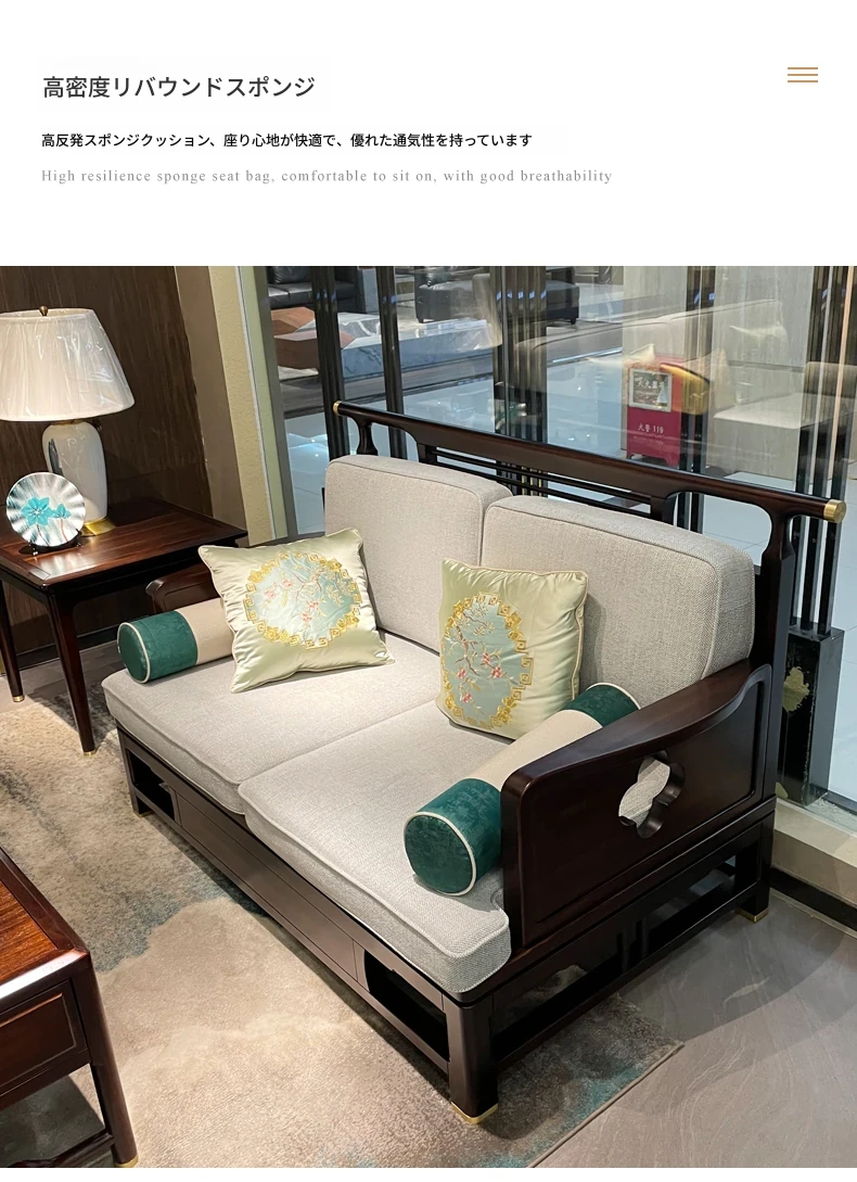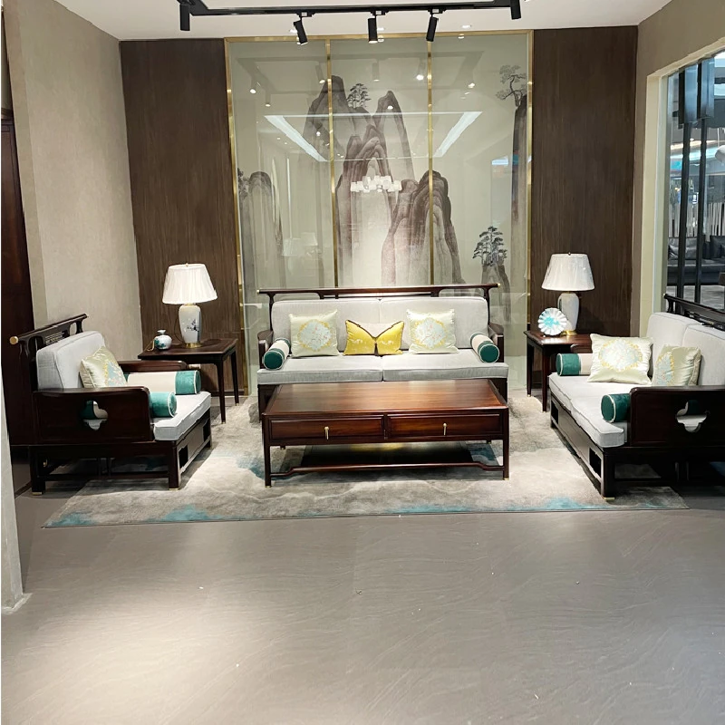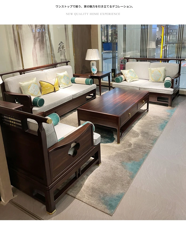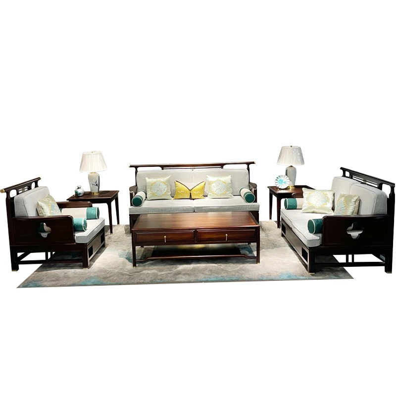 新中式スタイルのモダンな木製ソファセット - ラグジュアリーでありながらコンパクト、冬夏両用の心地よいデザイン。小さなスペースにもぴったりな禅の雰囲気を持つホテル家具。