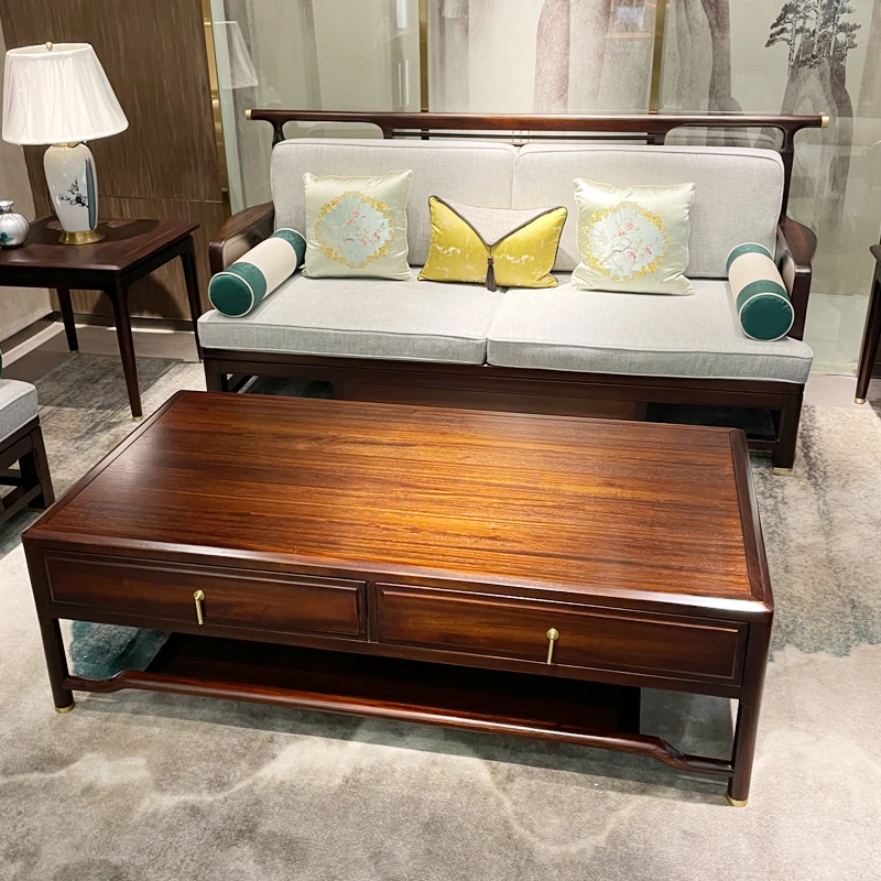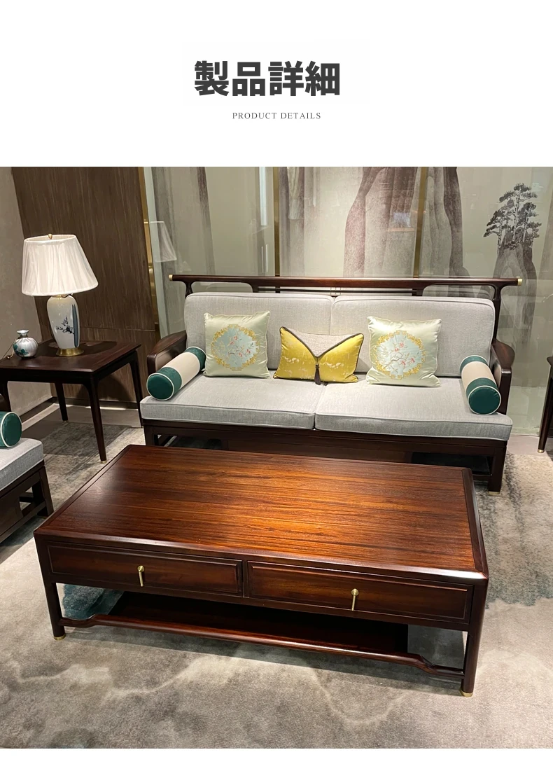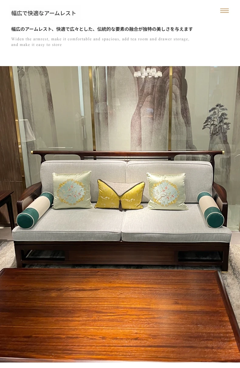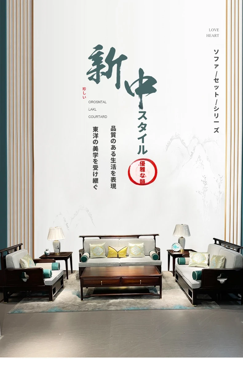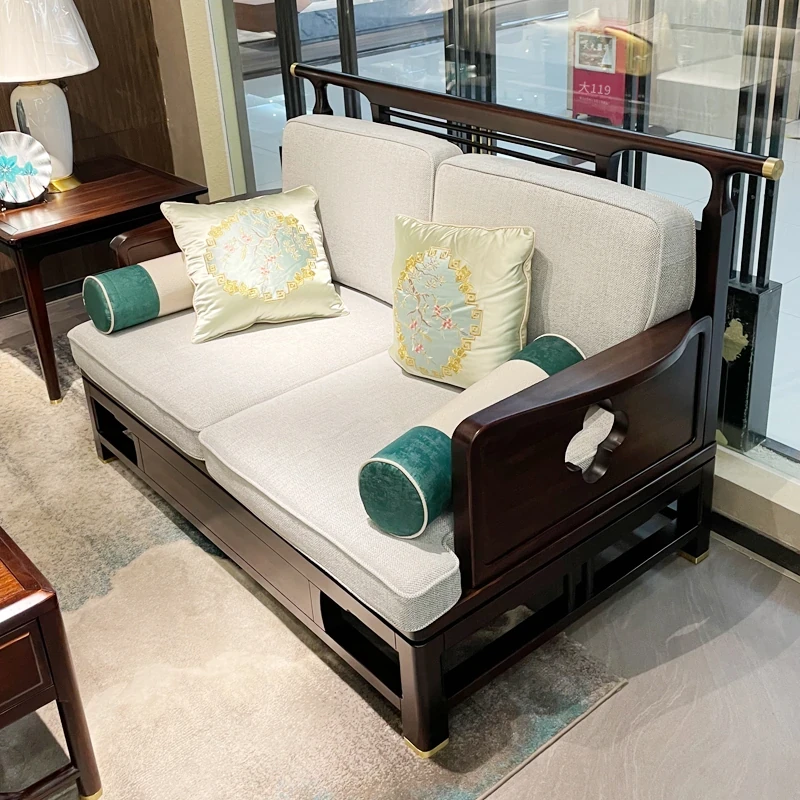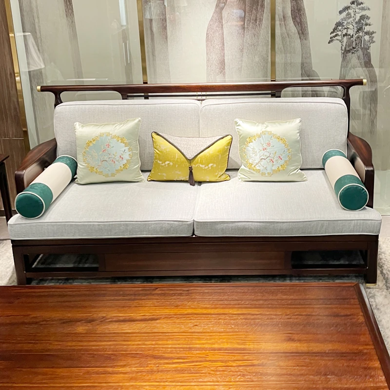 新中式スタイルのモダンな木製ソファセット - ラグジュアリーでありながらコンパクト、冬夏両用の心地よいデザイン。小さなスペースにもぴったりな禅の雰囲気を持つホテル家具。