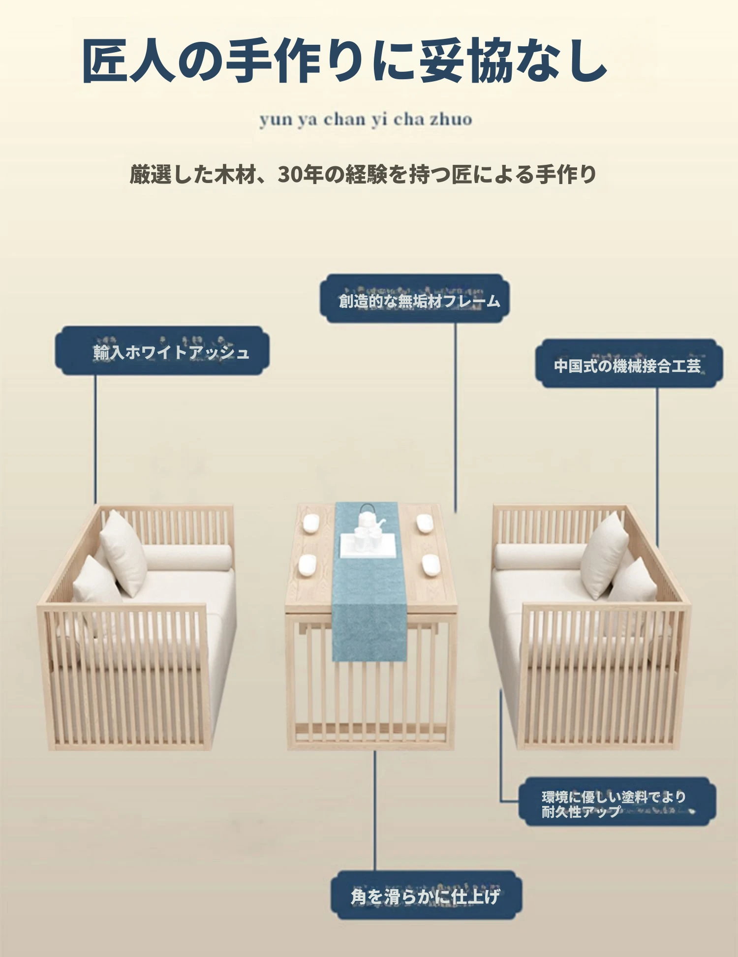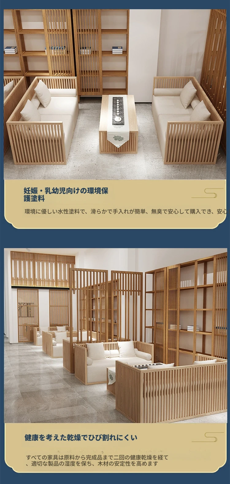 新中式ホワイトアッシュ無垢材リラックスエリア!茶楼・商談・バー・レストランに最適なカスタマイズ可能なボックスソファ。快適な空間で特別なひとときをお楽しみください!