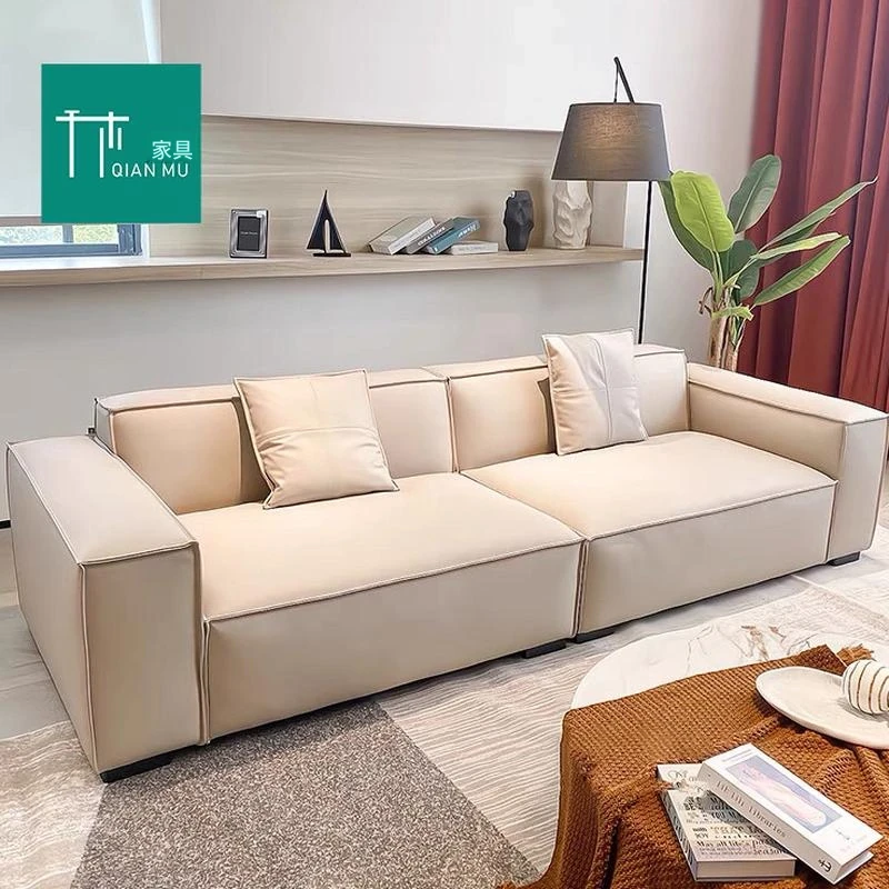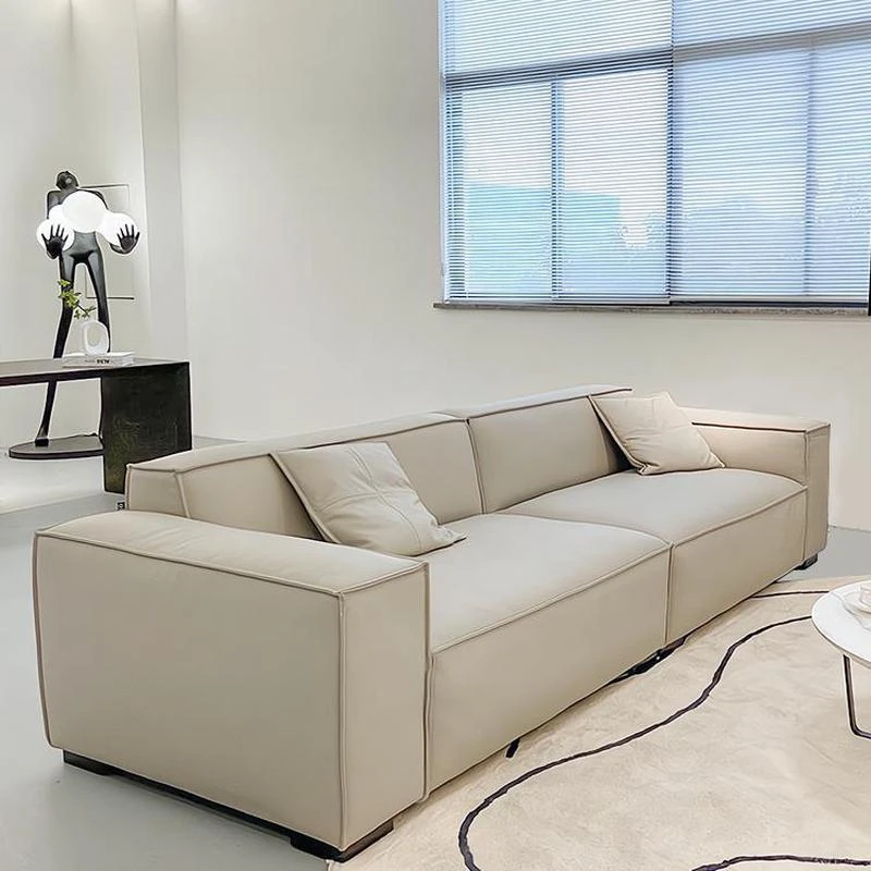 現代皮製豆腐ブロックソファ|イタリアンミニマリズムの3人用リビングソファ|小さなスペースに最適なスタイリッシュな組み合わせ|インフルエンサーも注目のトレンドアイテム!
