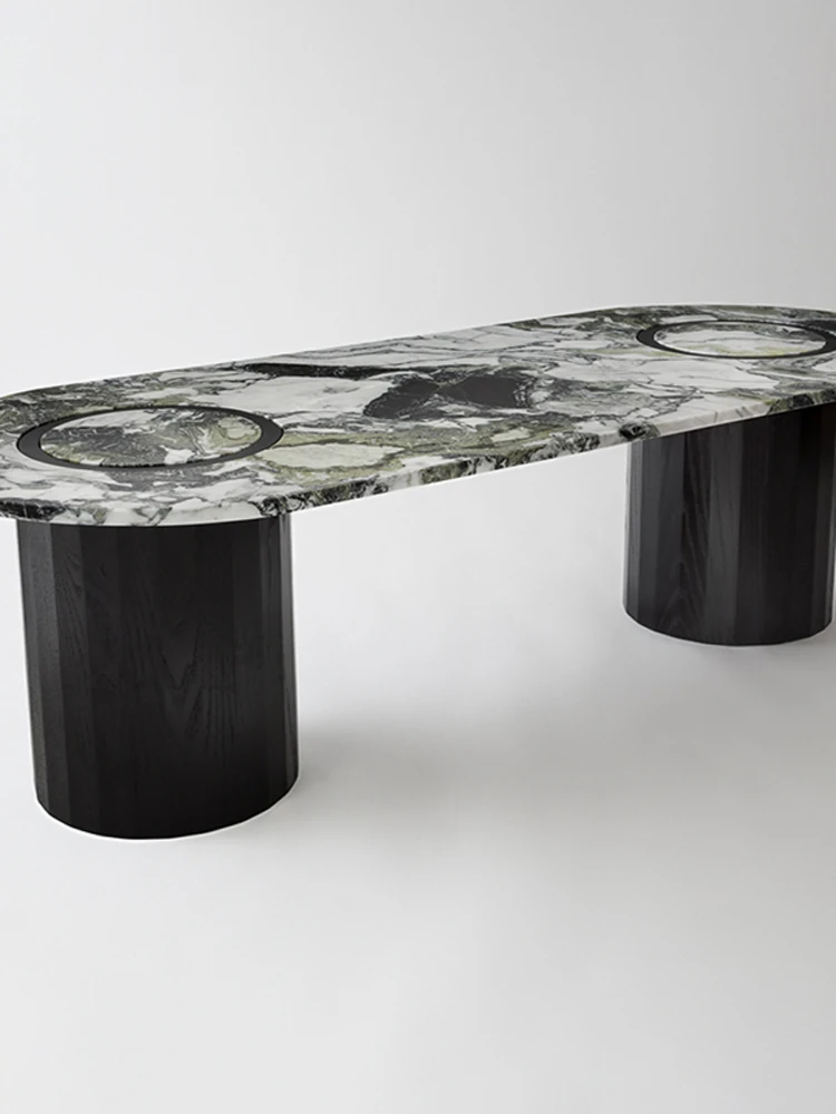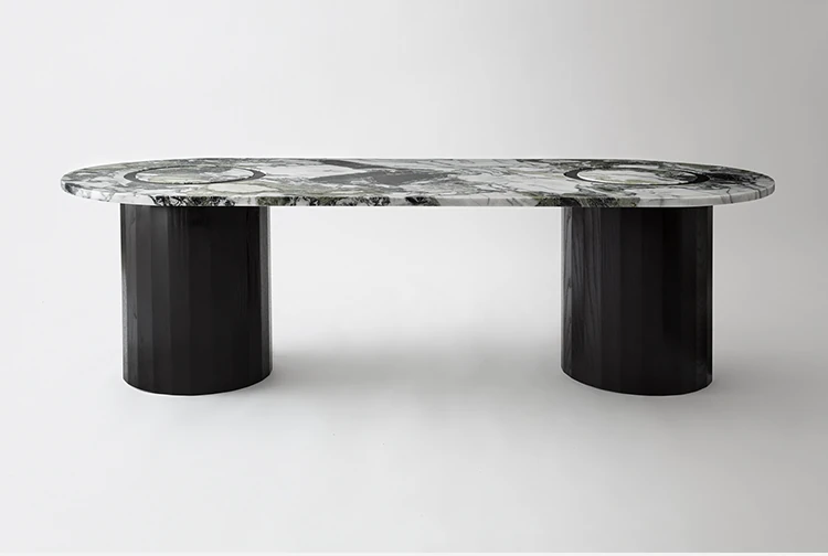 ブルガリ大理石ダイニングテーブル 超クリスタル石 ブラック&ホワイト イタリアンラグジュアリー モダンシンプル 小型住宅向け 長テーブル 家庭用