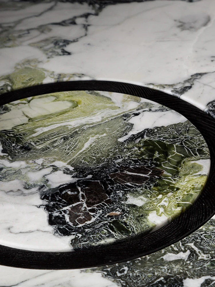 天然石の贅沢ダイニングテーブルセット - デザイナーによる洗練されたデザイン、別荘や豪邸に最適なダイニング&リビングルームのコーディネート。高級感溢れる空間を演出します!