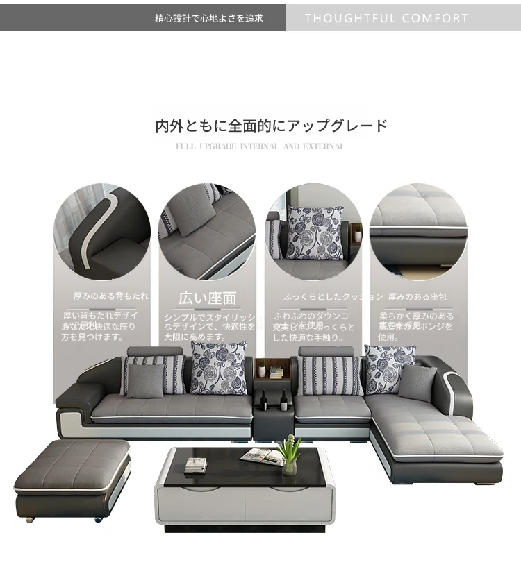 北欧風シンプルモダン!テクノロジー布とラテックスを使用した3.6/3メートルのコーナーソファ。快適なリビングにぴったりの簡単設計で、スタイリッシュな空間を演出します!