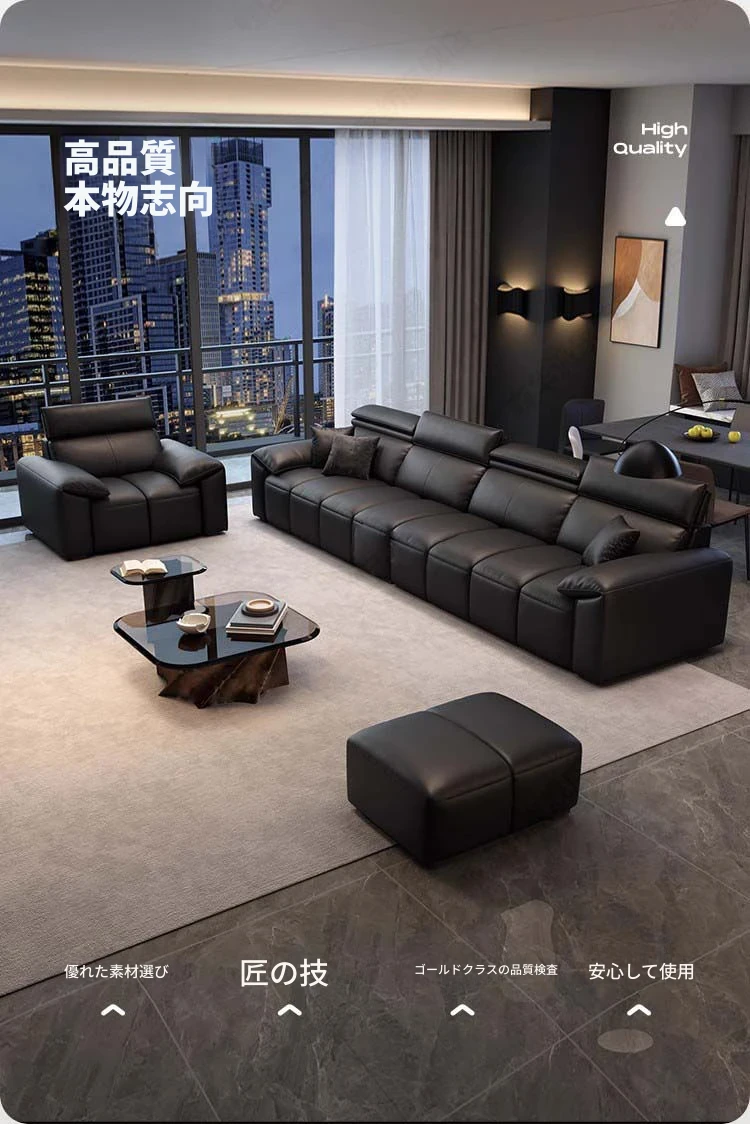 シンプルモダンな本革ソファ|リビングにぴったりな大きさ|高級感あふれる牛革製|ピアノキーのような洗練デザイン|快適な座り心地を実現!