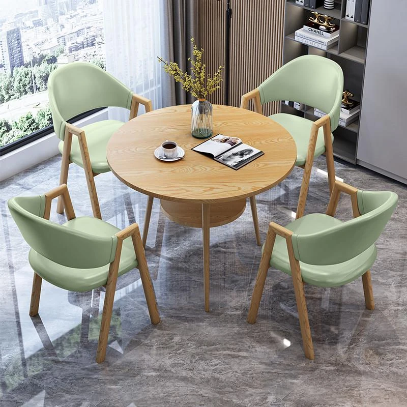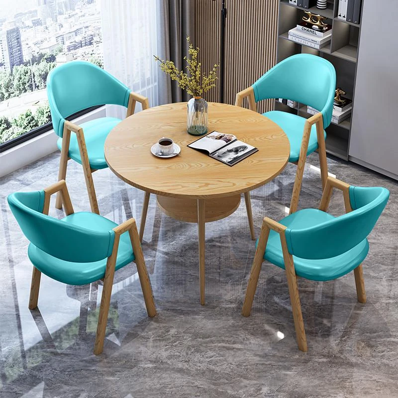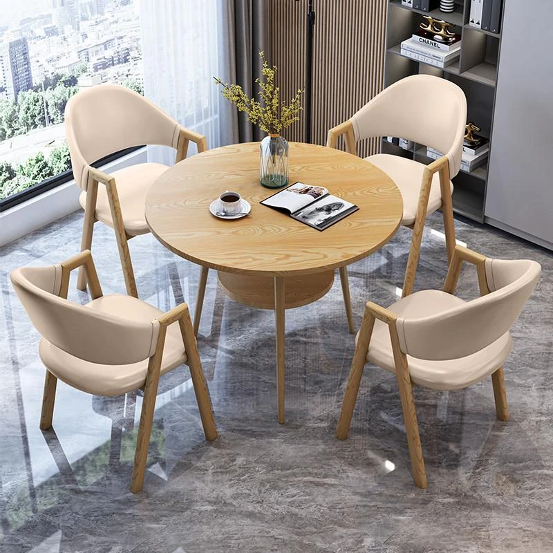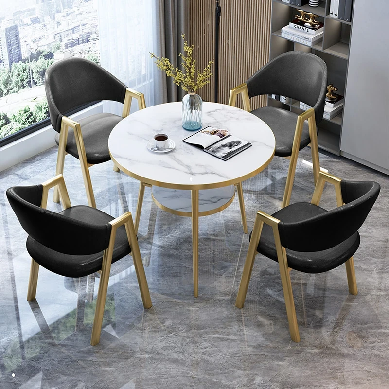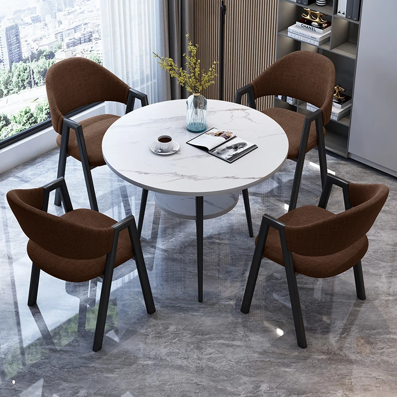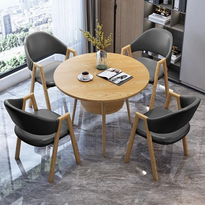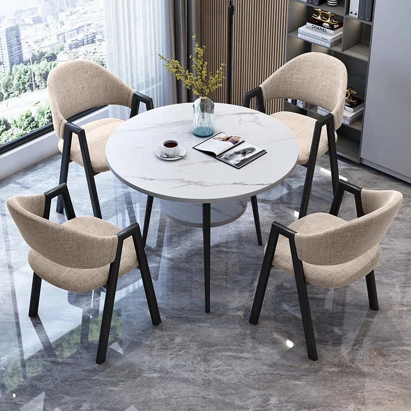 シンプルでモダンな商談テーブル&チェアセット|不動産販売所に最適なリラックスした会議スペース|小さな円形テーブルで快適な接客を実現!