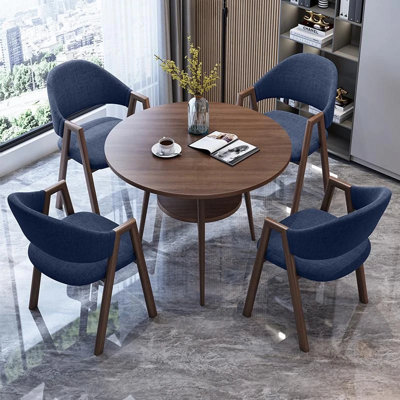 ダークブルー(80ウォールナット色円卓+4ファブリック椅子)