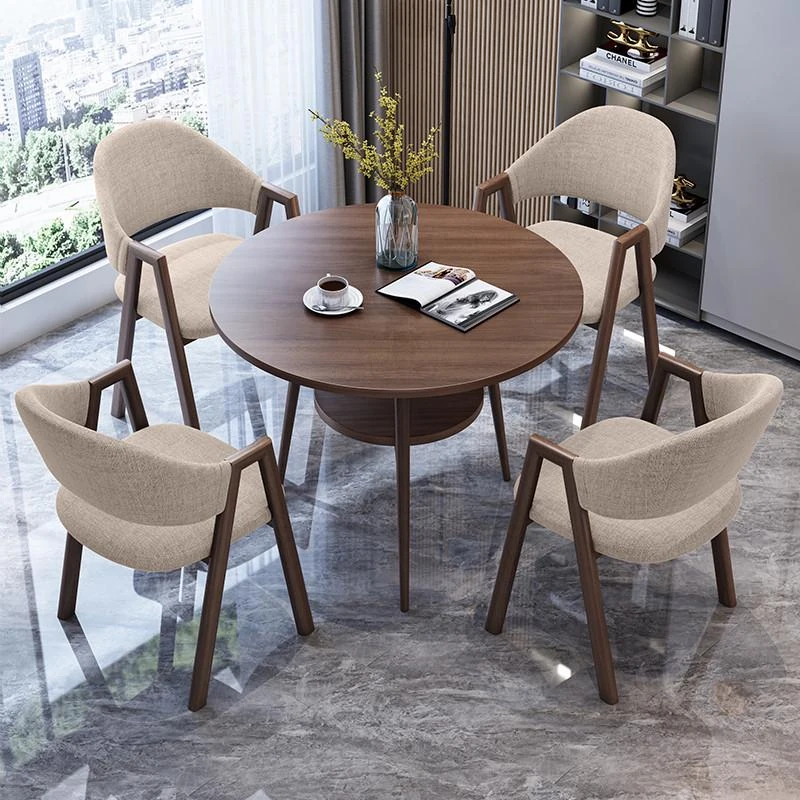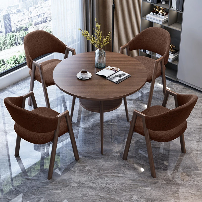 コーヒー色(80ウォールナット色円卓+4ファブリック椅子)