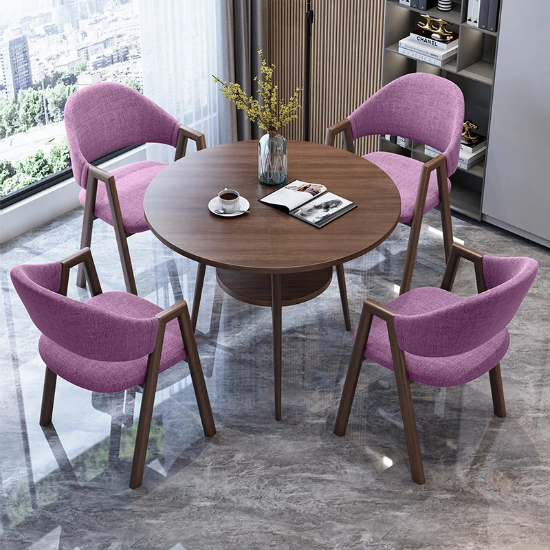 紫色(80ウォールナット色円卓+4ファブリック椅子)