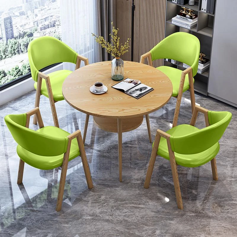 蛍光グリーン(80ナチュラルウッド色円卓+4レザー椅子)