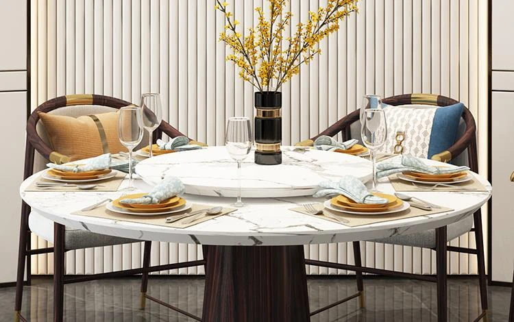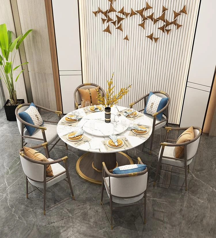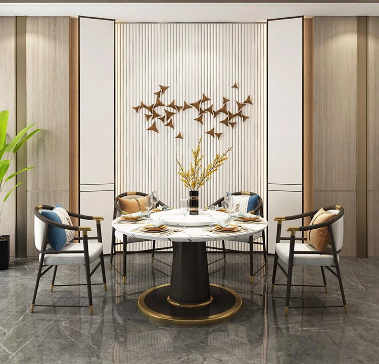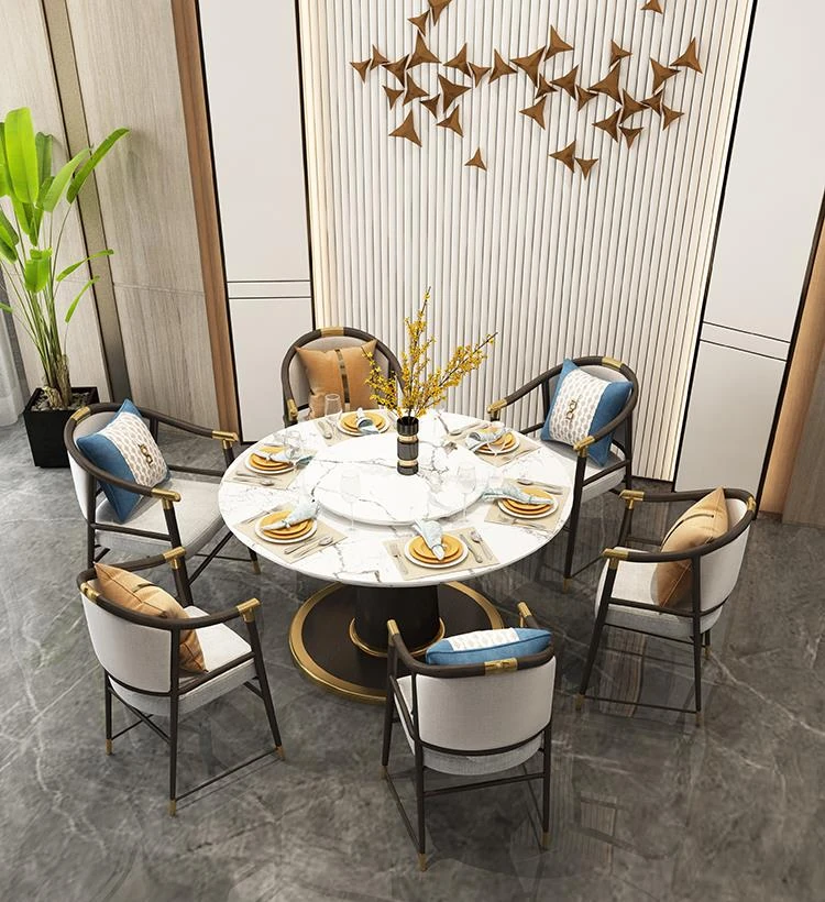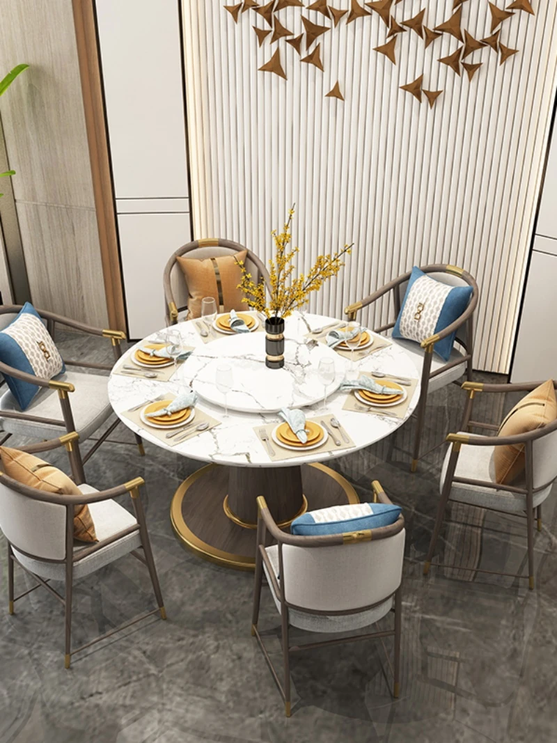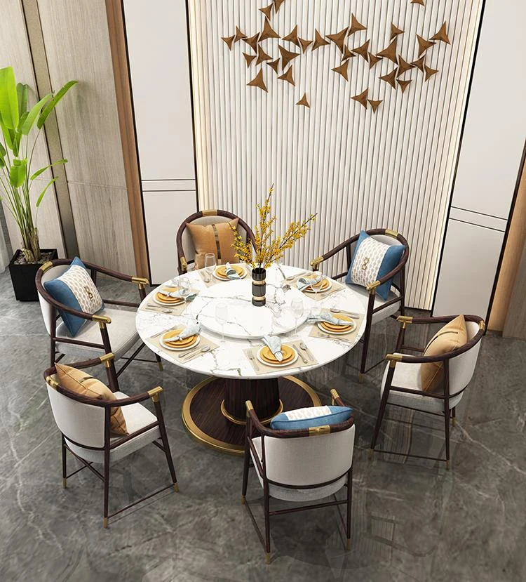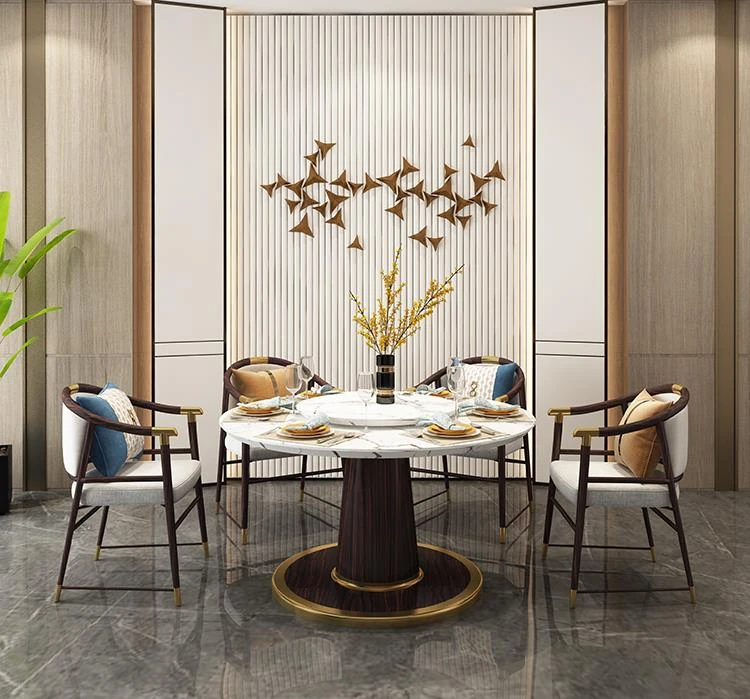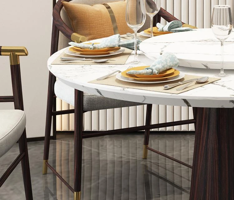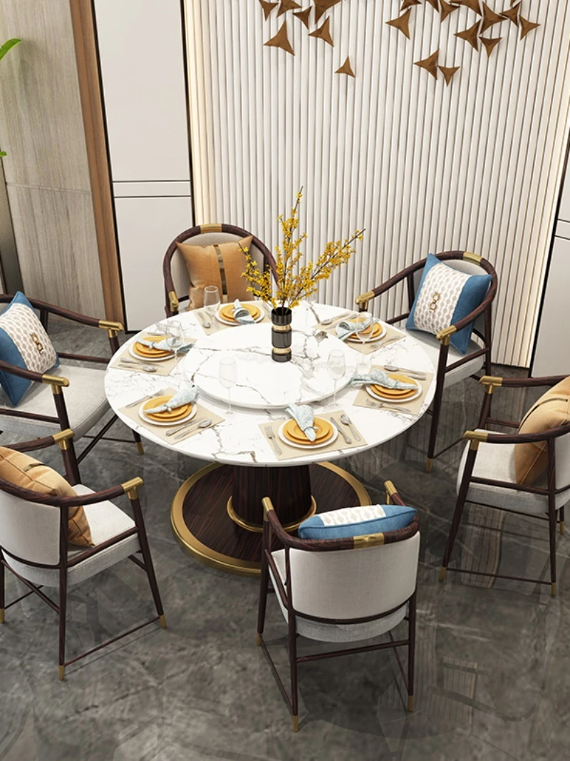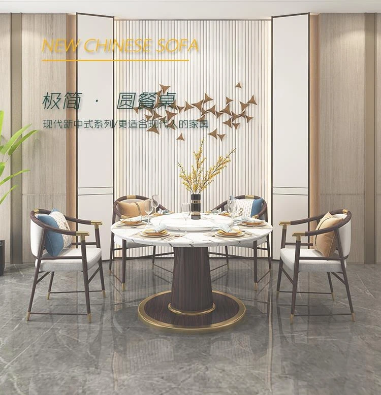 新中式デザインの高級感あふれる無垢材ダイニングテーブルセット - シンプルで洗練された円形テーブルと椅子、心安らぐ禅の雰囲気を演出する食卓。食事の時間を特別なひとときに。