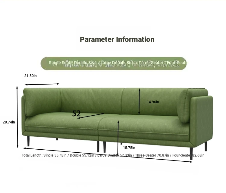 Modern Minimalist Sofa for Small Spaces - Removable and Washable Velvet Couch for Living Room, Home Office, and Reception - Comfortable Double and Three-Seat Straight Sofa
