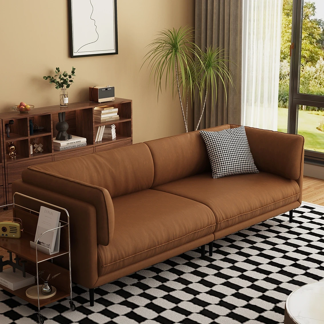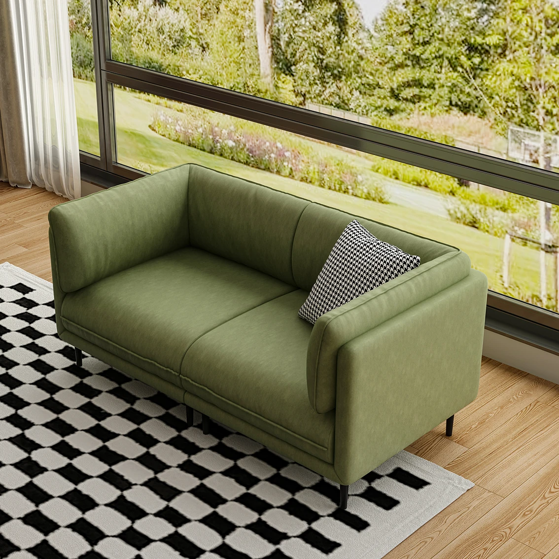 モダンミニマリストデザインの小型ソファ|おしゃれなリビングやオフィスに最適|洗えるベルベット素材|ダブルまたはトリプルシートの直線型ソファ|快適さとスタイルを兼ね備えた必需品!