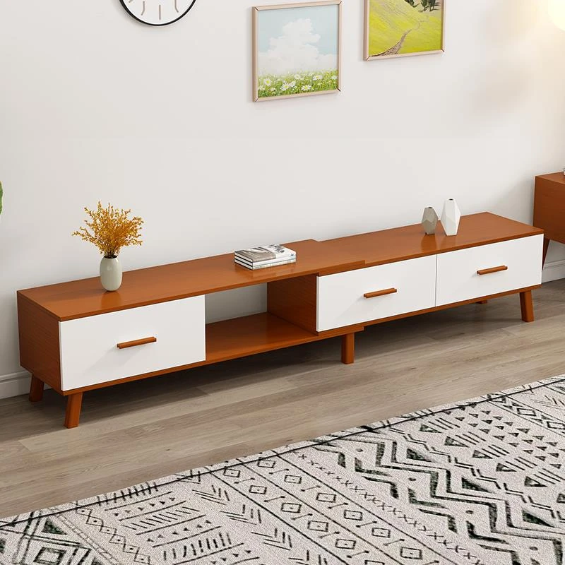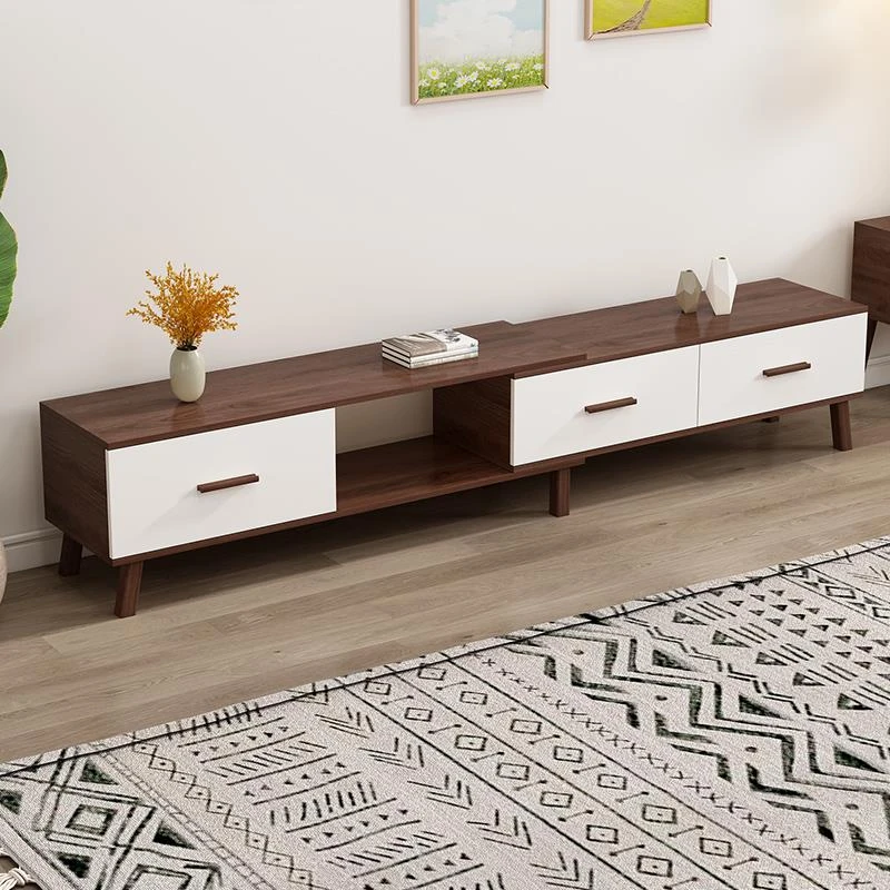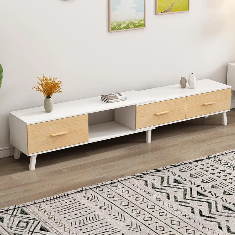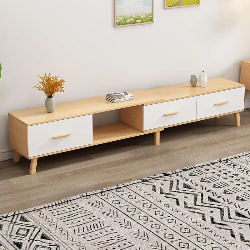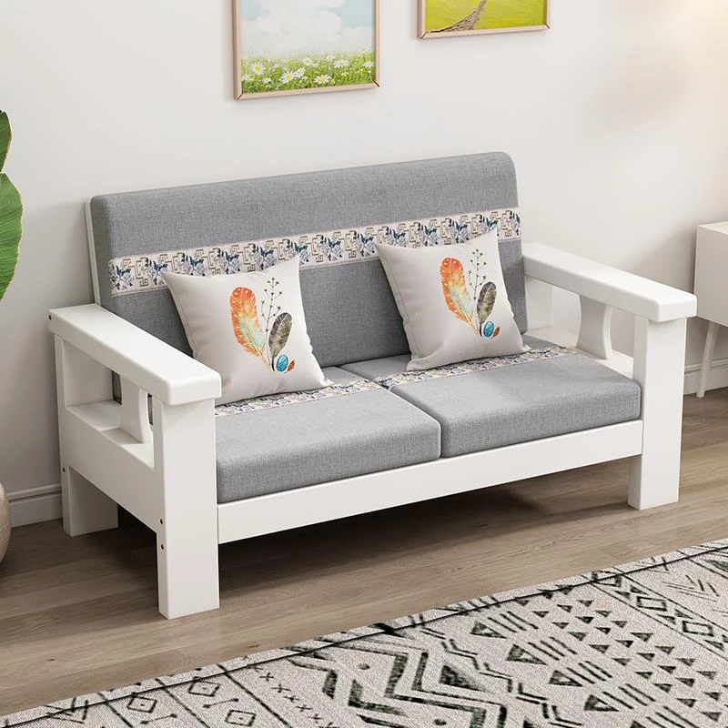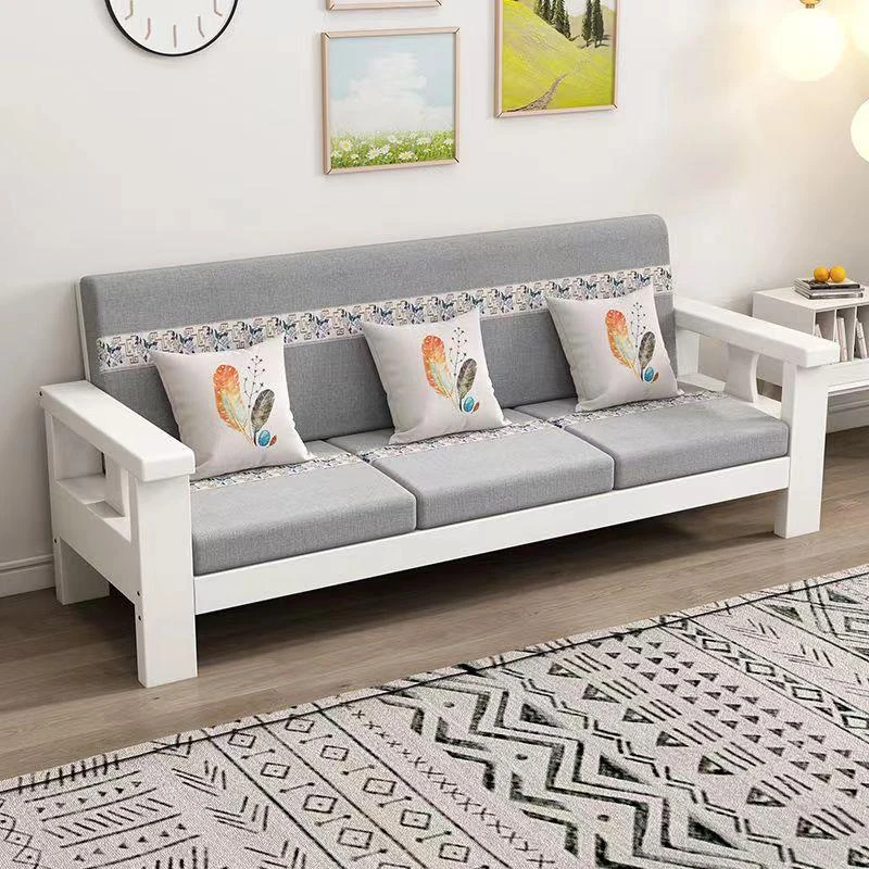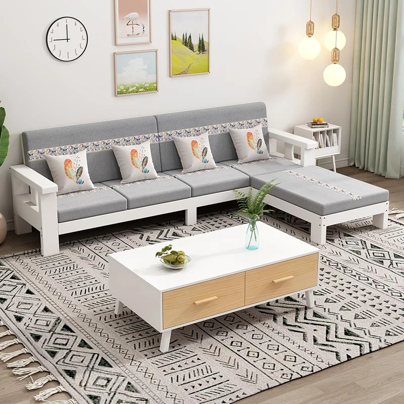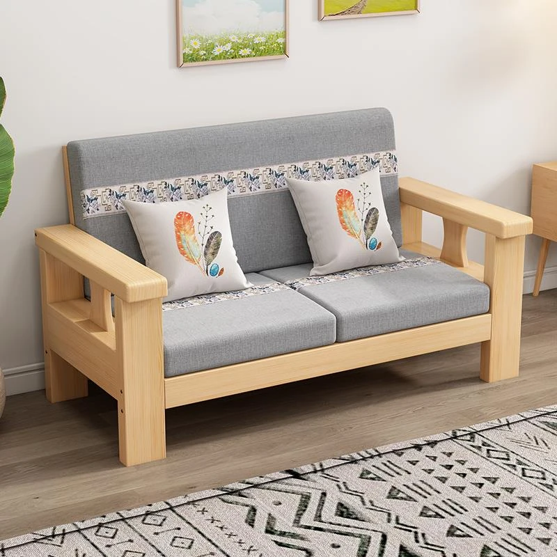 モダン中式のシンプルな実木製ソファ・テーブル・テレビ台セット - 小さなスペースにぴったりの家族向け家具!おしゃれで機能的、居心地の良いリビングを演出します。