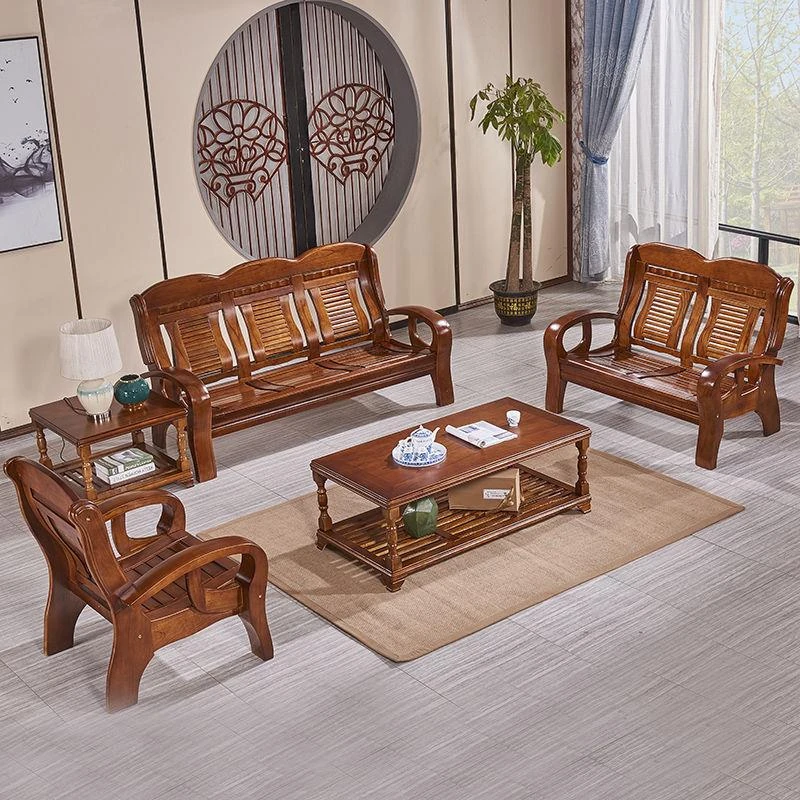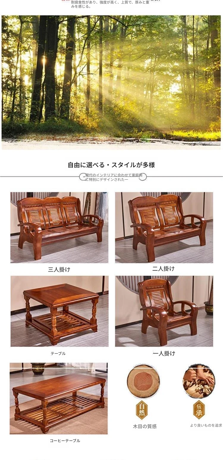 全実木製シンプルソファーセット|小型スペースに最適な1+2+3現代中式田舎風ソファ|温かみのあるデザインで心地よいリビングを演出!
